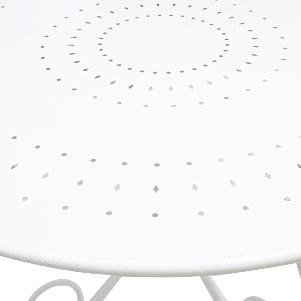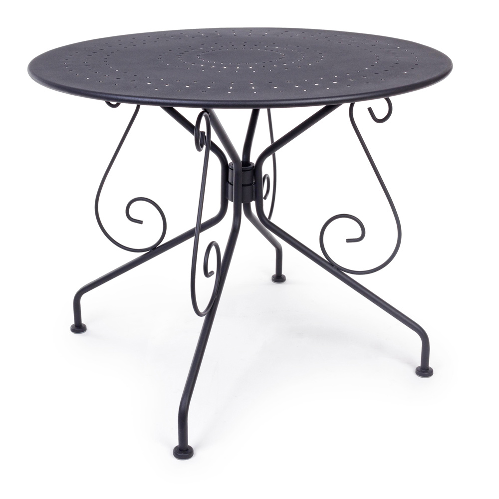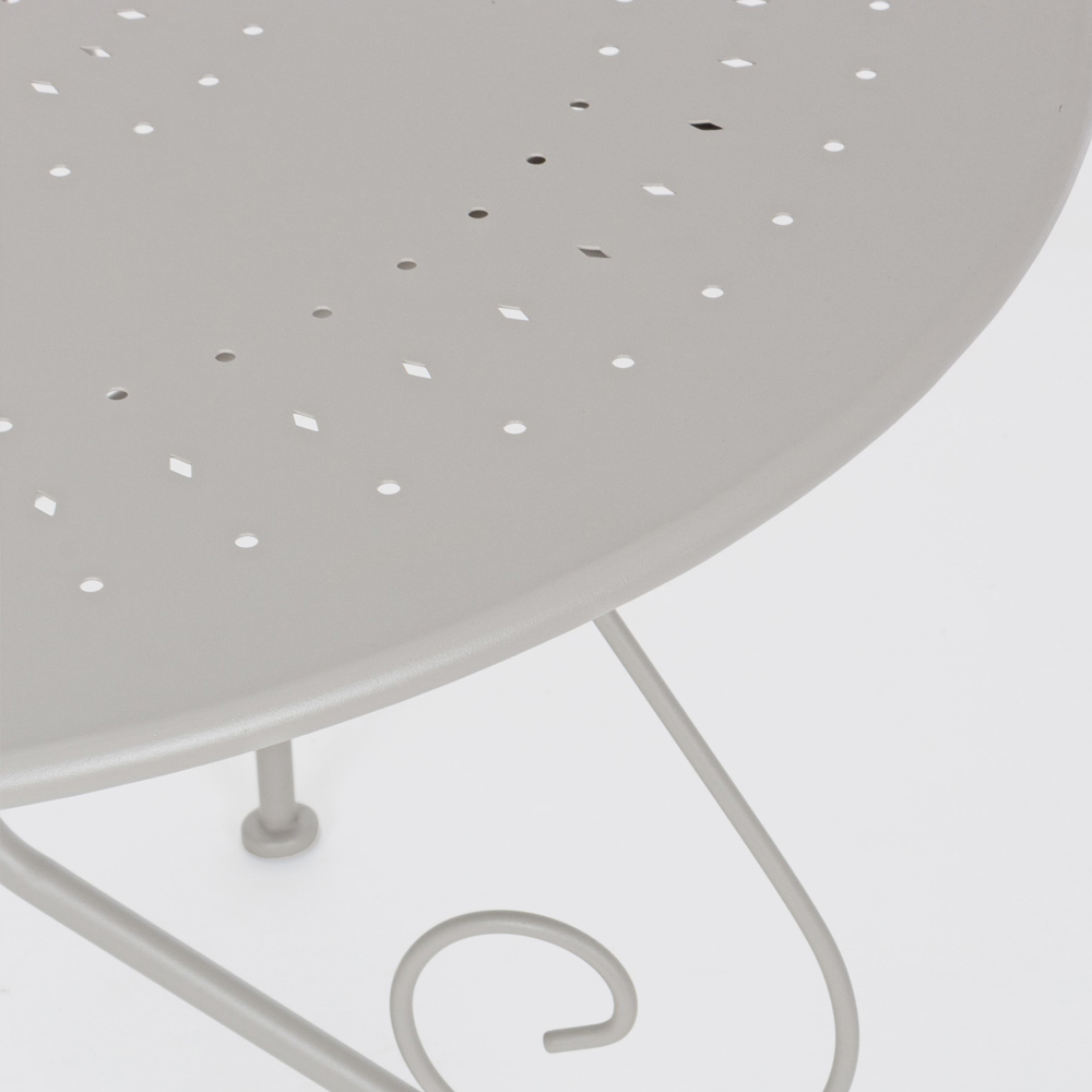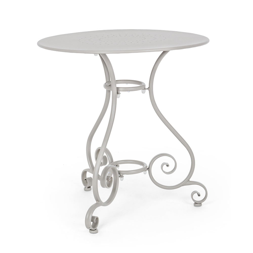 Runder Tisch für den Shabby Chich-Stil im Freien aus lackiertem Stahl, erhältlich in zwei verschiedenen Größen.