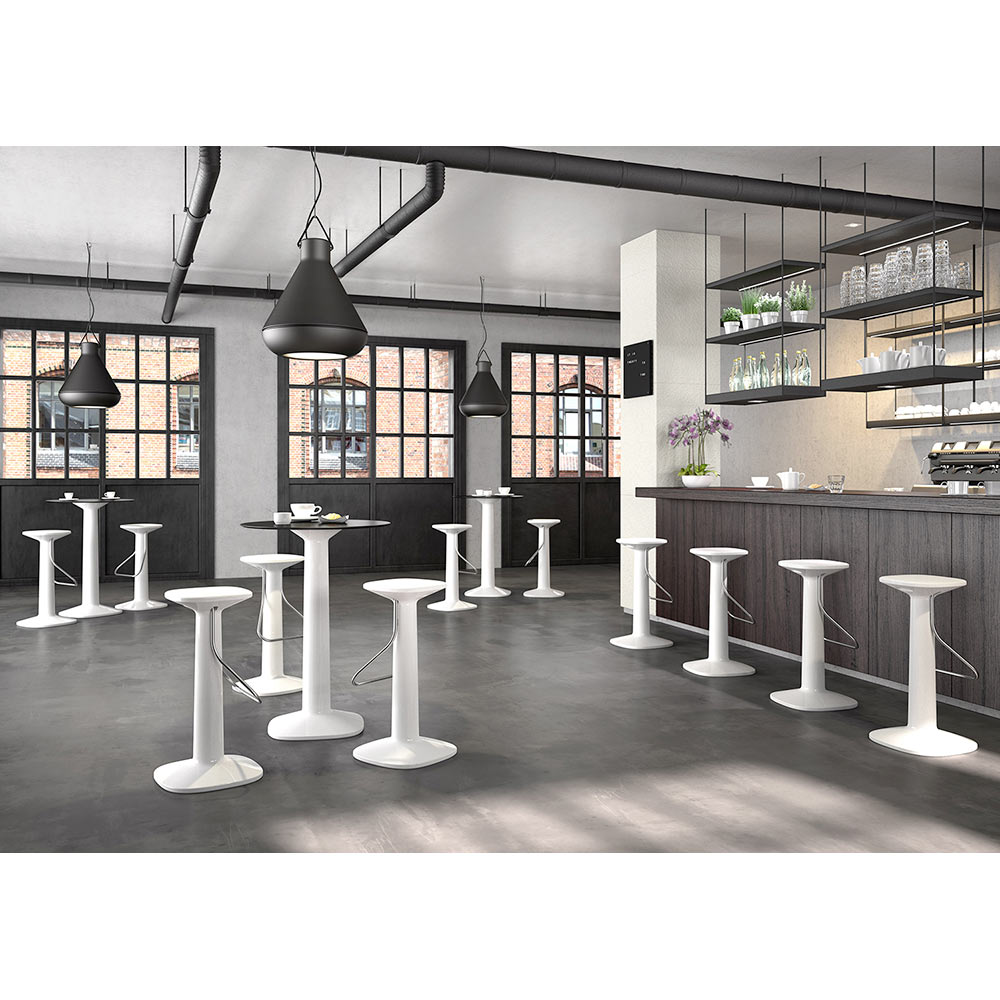 mattem Polyethylen besteht , das Vielseitigkeit und Beständigkeit gegen Hitze, Sonne und Stöße bietet und das Produkt perfekt für den Einsatz im Freien macht. Ideal in Kombination mit hohen Hockern, um die Einrichtung von Umgebungen mit einem zeitgemäßen und minimalistischen Design zu vervollständigen und dem Raum Charakter und Persönlichkeit zu verleihen.