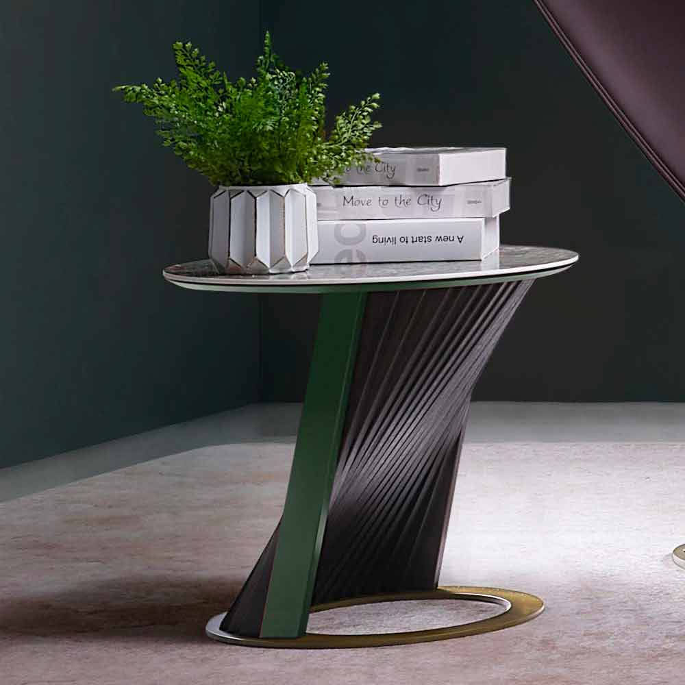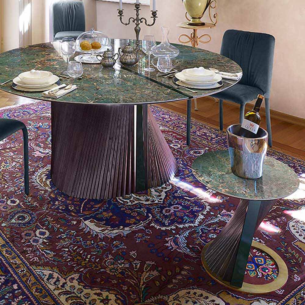 Design Couchtisch mit runder Platte aus Steinzeug mit Marmoreffekt, Luxusartikel Made in Italy.