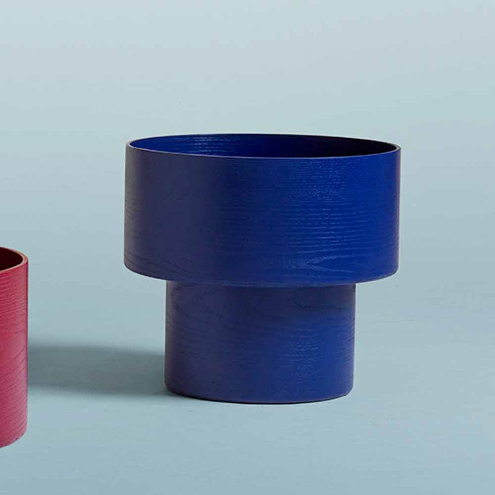 Runder Nachttisch in modernem Design aus bordeauxrotem oder blauem Holz – Vinnie