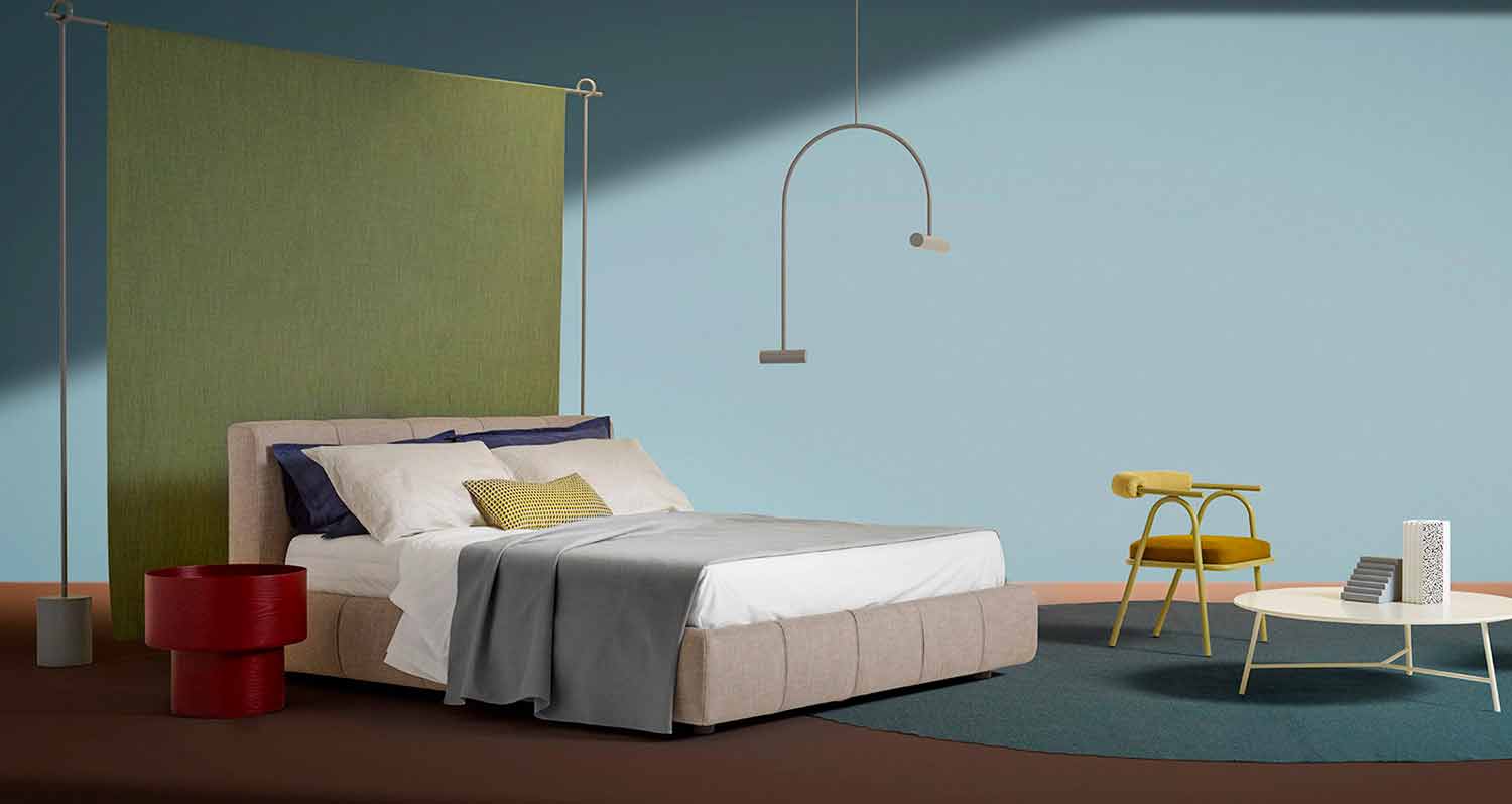 So entstand eine kreisförmige Platte , die in zwei Hälften geteilt ist und zwei verschiedene Höhen aufweist: eine höhere und eine tiefere, die mehr Platz bietet, um Zeitschriften, Bücher, Fernbedienungen usw. unterzubringen.