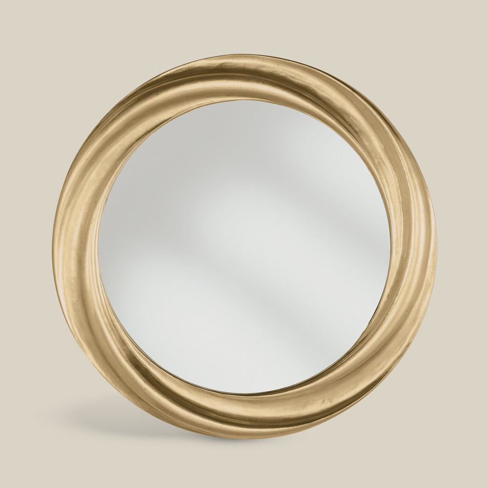 Runder Spiegel mit Holzrahmen verziert mit Blattgold . Dank seines klassischen Stils ist dieser Spiegel ideal, um jedem Raum eine elegante und luxuriöse Note zu verleihen.