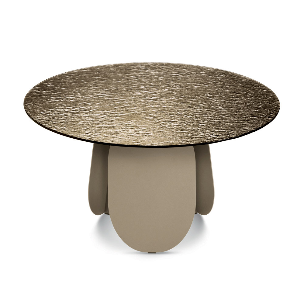 Erhältlich in zwei Durchmessern, ist es dank seiner runden Form perfekt geeignet, um Geselligkeit zu fördern und passt ideal in moderne Wohnzimmer und elegante Küchen.
