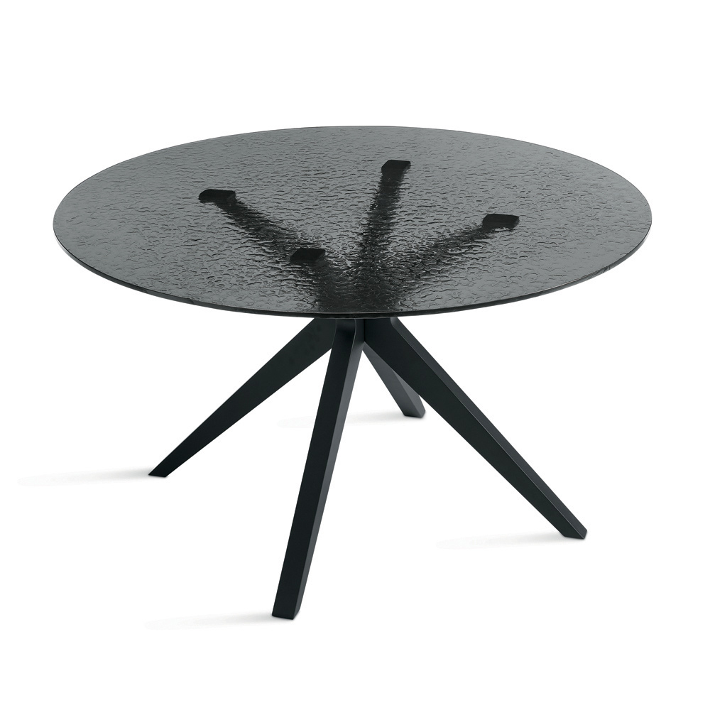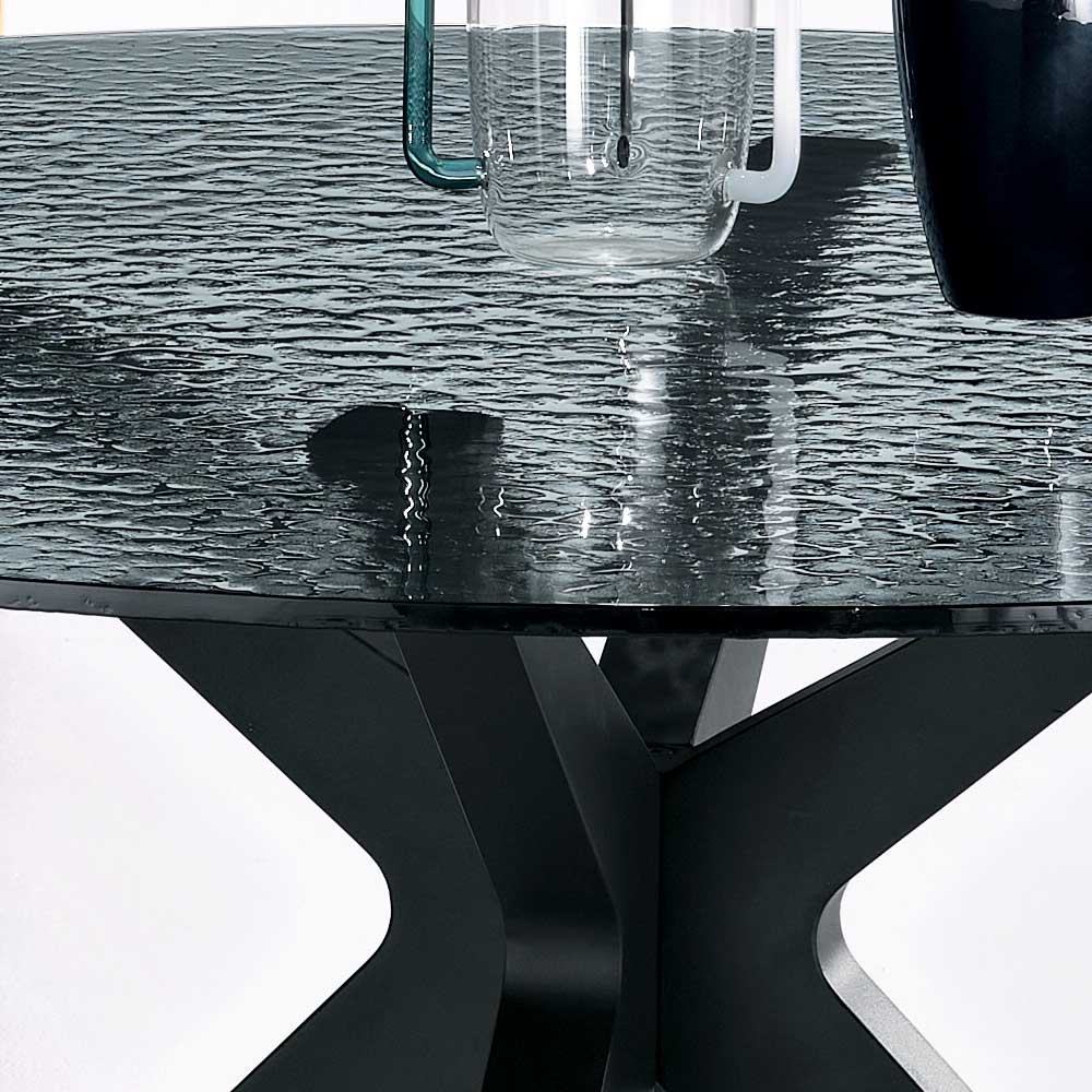 Runder Tisch, Durchmesser 140 cm, aus geräuchertem, gehämmertem Glas und Metall - Domus