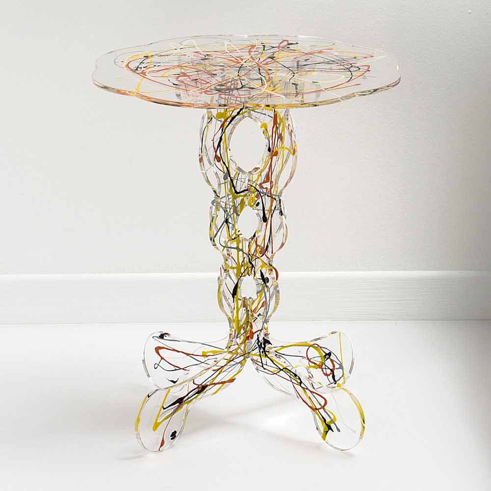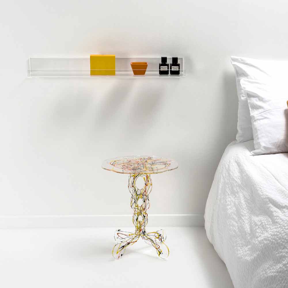 Nennen Sie mich Maurisch für den exzentrischen Tisch Janis, nutzbar als Couchtisch, als Nachttisch oder als Tisch im Freien. Die transparente, lasergeschnittene Plexiglas-Basis macht es unaufdringlich, während der kunstvolle Farbspray zu Ehren von Jackson Pollock einen Hauch von Originalität verleiht. Sowohl die transparente Basis als auch das Regal bestehen aus 100% PMMA-Acrylglas aus jungfräulichem Polymer. Plexiglas ist stoßfest, nicht verformbar, unveränderbar und wärmeisolierend. Die Helligkeit und Helligkeit werden über die Zeit konstant und unverändert beibehalten. PMMA Plexiglas aus reinem Polymer ist ungiftig, hypoallergen, geruchlos und antibakteriell. 100% recycelbar. Entspricht UNI EN 71-3: 200. Die Farbgebung kann aufgrund der handwerklichen Sorgfalt kleine Abweichungen erfahren. Entworfen, entworfen und hergestellt in Italien, mit italienischen Materialien.
