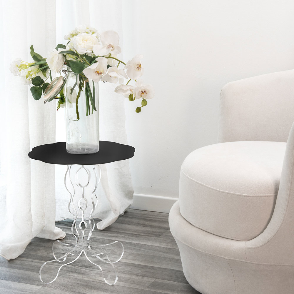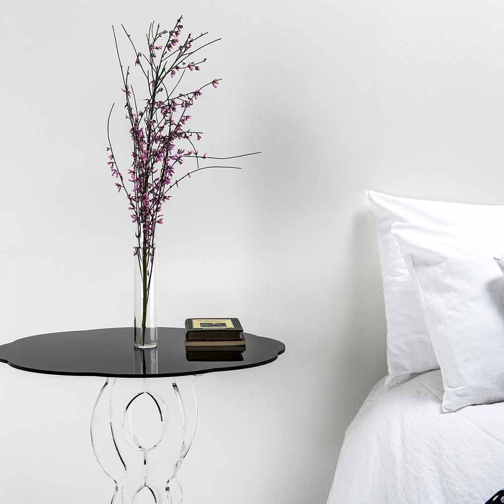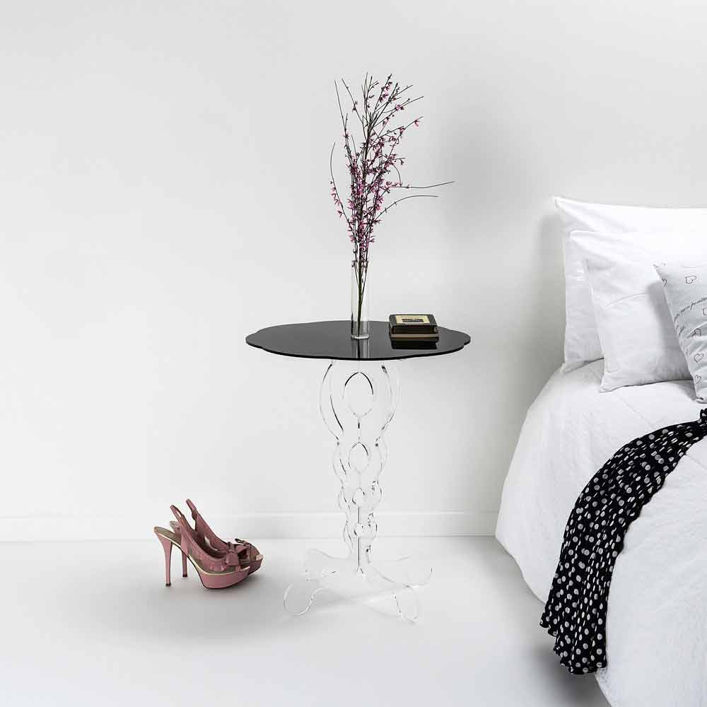 Maurische Referenzen für den schwarzen Couchtisch von Janis: Die 100% PMMA-Plexiglasbasis aus transparentem Polymer, lasergeschnitten, gibt Diskretion, während das schwarze Pigment-Top dem Haus einen Hauch von Farbe verleiht. Plexiglas ist stoßfest, nicht verformbar, unveränderbar und wärmeisolierend. Die Helligkeit und Helligkeit werden über die Zeit konstant und unverändert beibehalten. PMMA Plexiglas aus reinem Polymer ist ungiftig, hypoallergen, geruchlos und antibakteriell. Entworfen, entworfen und hergestellt in Italien, mit italienischen Materialien.