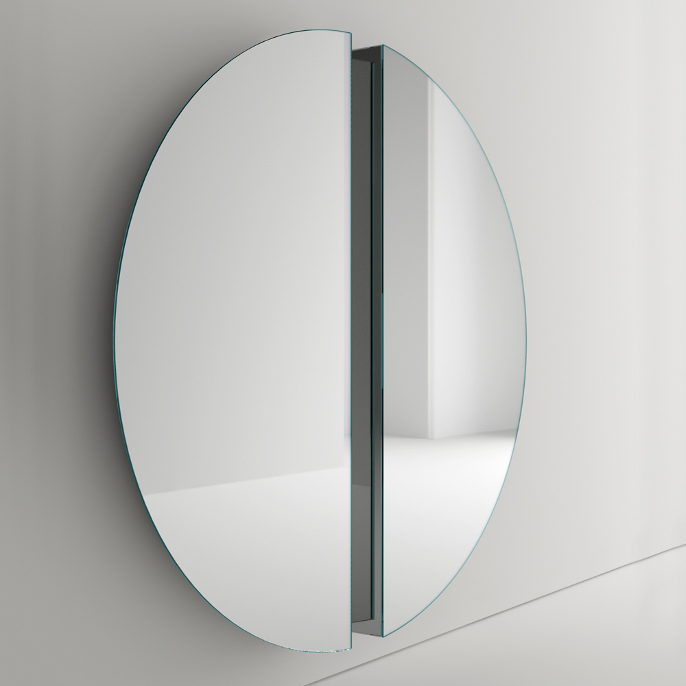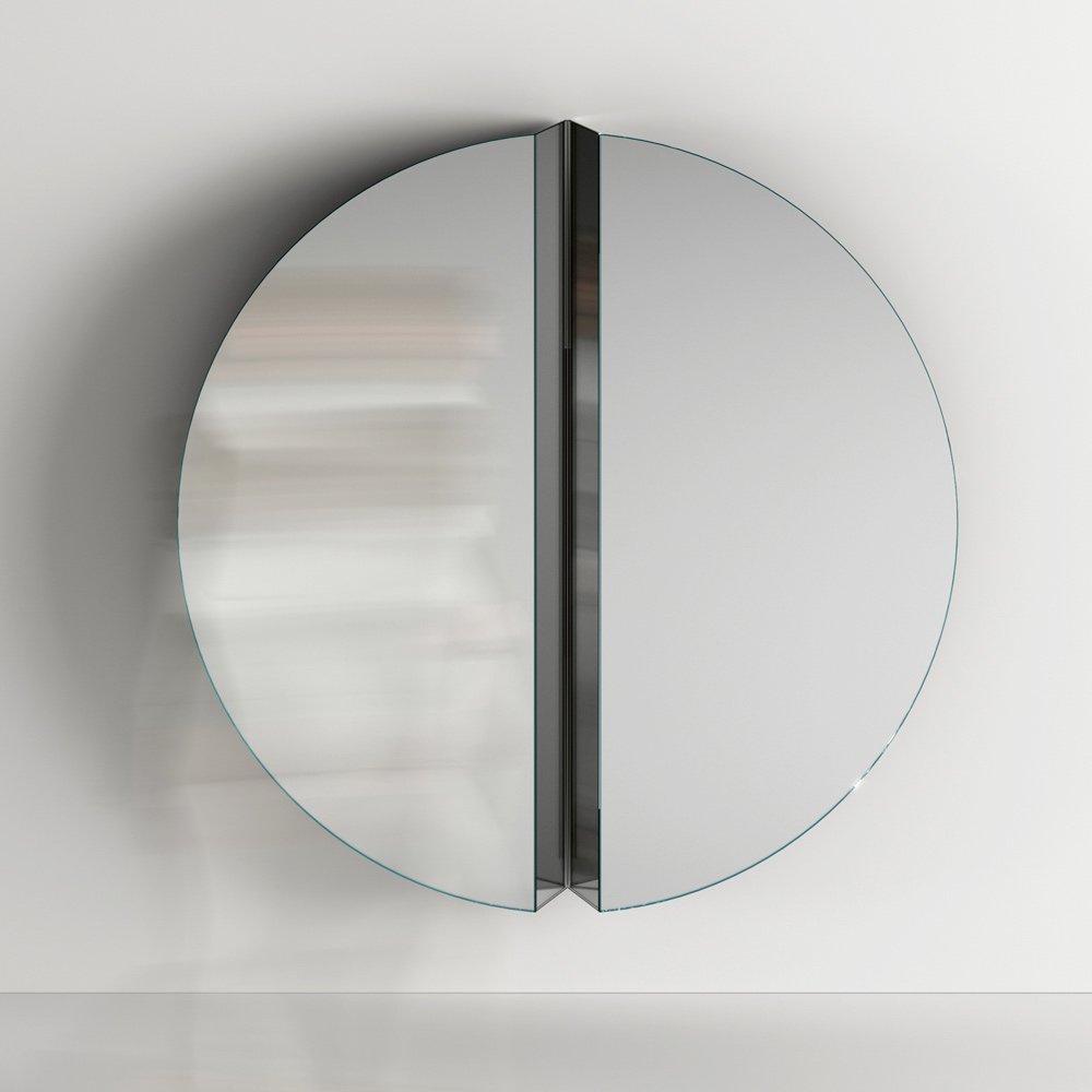 Runder Wandspiegel mit zentralem V-Schnitt, der die Paneele trennt - Spirit