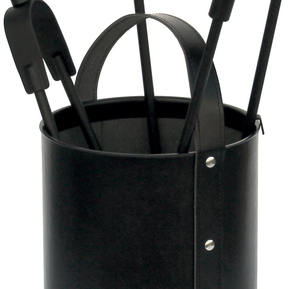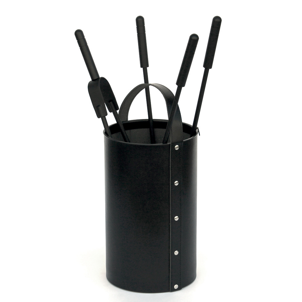 Dieser Werkzeughalter im zylindrischen Design ist eine elegante und praktische Ergänzung für die Kaminverwaltung und -wartung . Der Behälter sorgt nicht nur für Ordnung im Kaminbereich, sondern dient auch als Designstück, das dem Raum eine rustikale und einladende Note verleiht.
