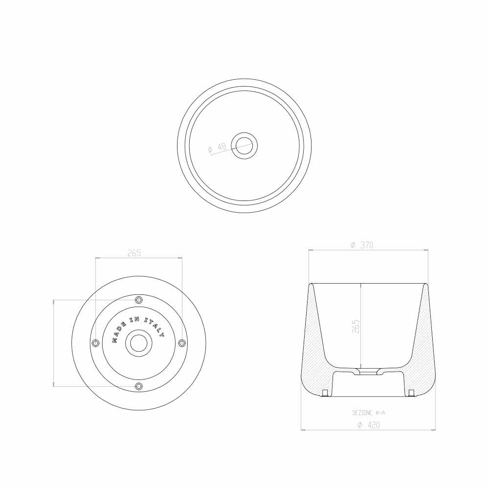 Rundes Aufsatzbecken aus weißer oder farbiger Keramik Oliena