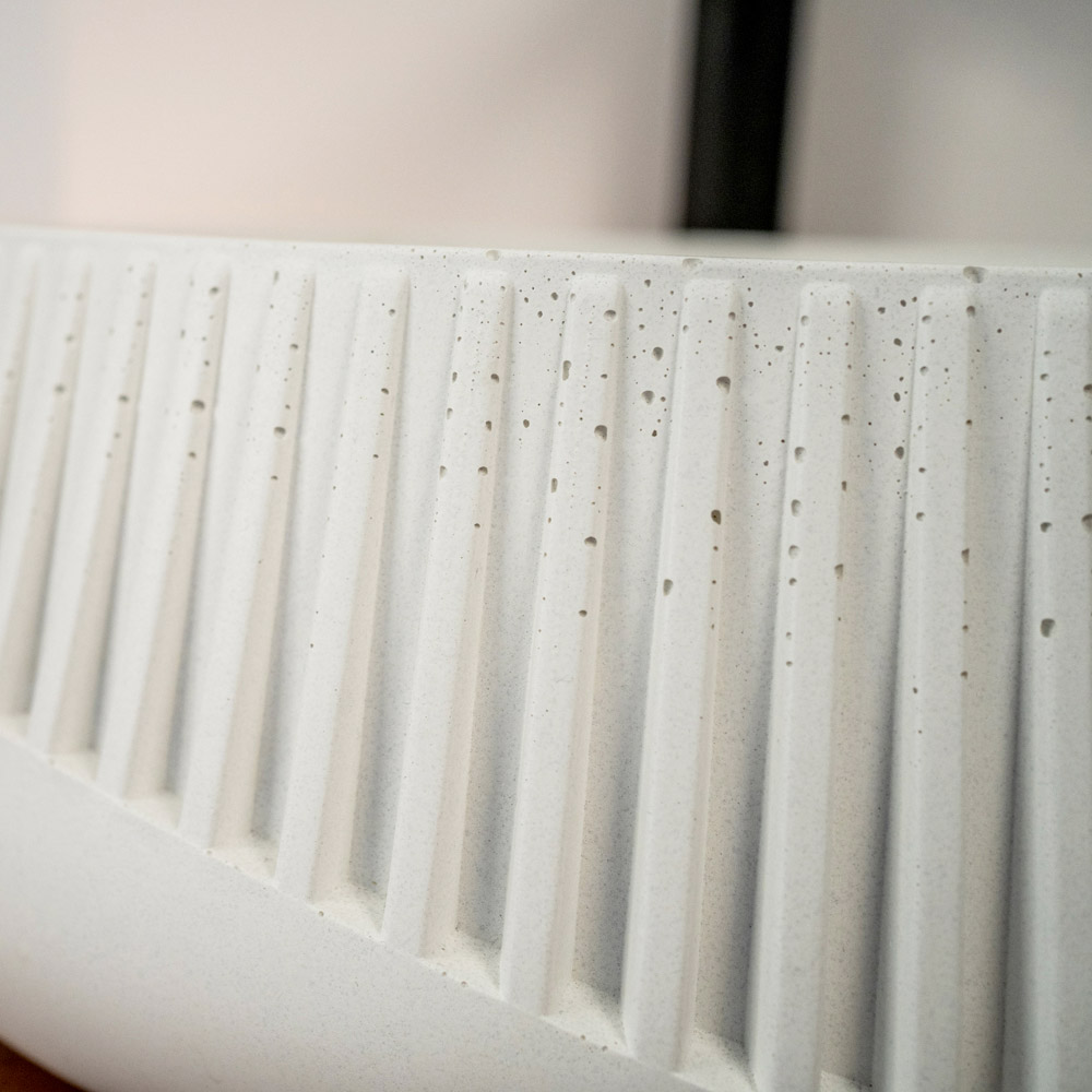 Dieses Aufsatzwaschbecken , perfekt für Liebhaber des Urban Cottage- oder Industrial-Stils, ist Skulptur und Funktion in einem einzigen Objekt. Sein Wesen kommt durch die äußeren Mikroporen und die authentischen Schattierungen des verwendeten Zements zum Ausdruck. Die äußere Verarbeitung mit präzisen Gravuren sorgt für einen materiellen Touch. Dieses in zwei Ausführungen erhältliche Waschbecken ist ein Stil-Statement für Mutige, die auffallen möchten.