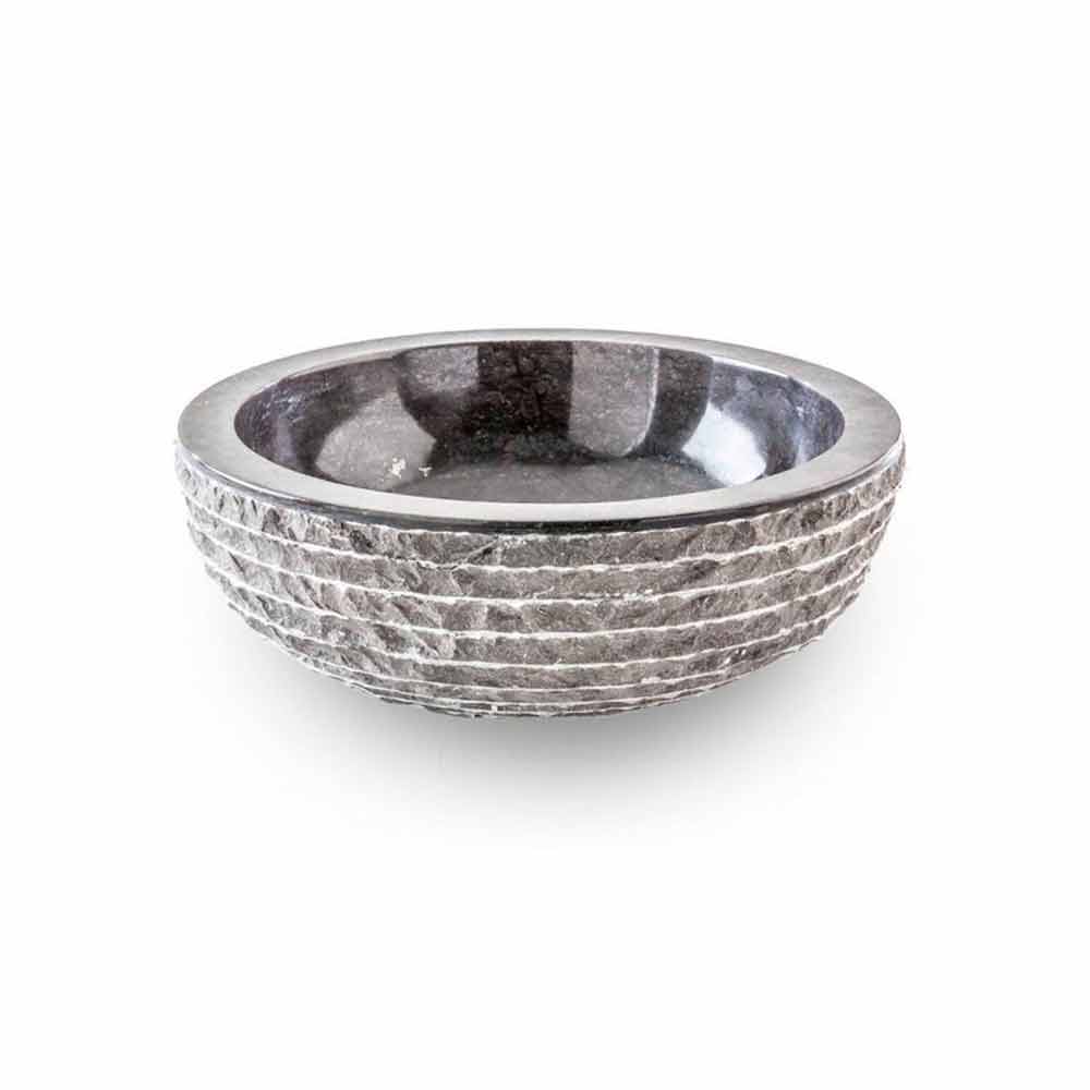 Handgefertigtes Waschbecken aus Marmor aus den Steinbrüchen südlich des Mount Merapi. Innen und am oberen Rand poliert, ist es roh und außen mit Cutter und Meißel bearbeitet. Materie zeigt sich und lässt sich anfassen, wie sie ist und werden kann!