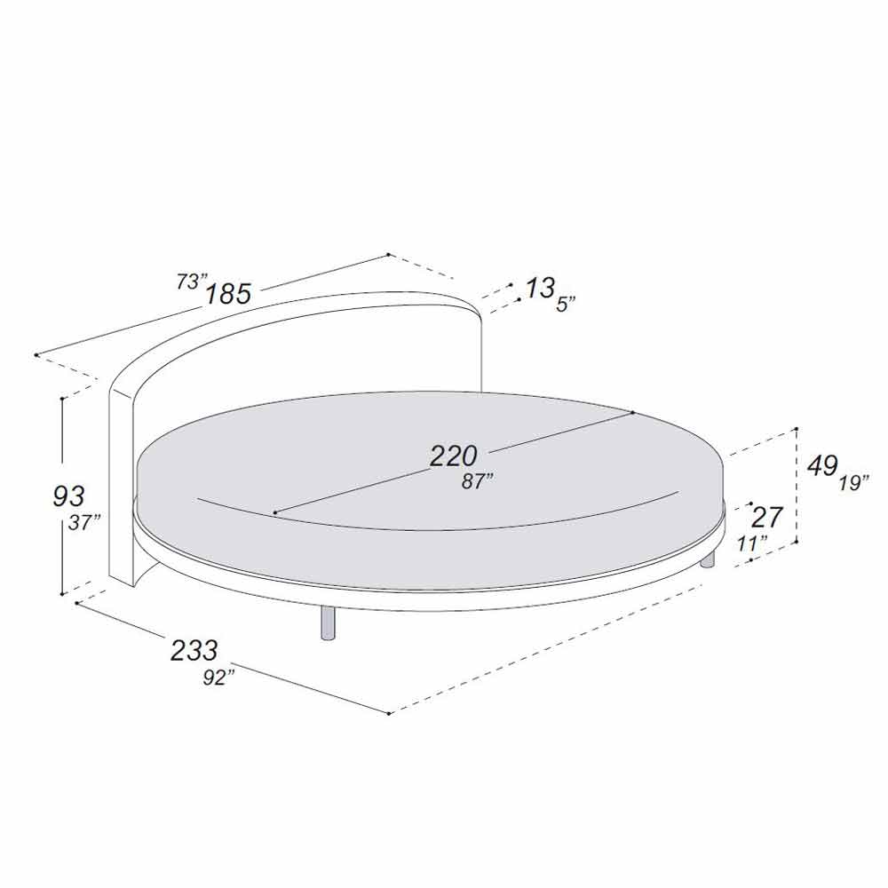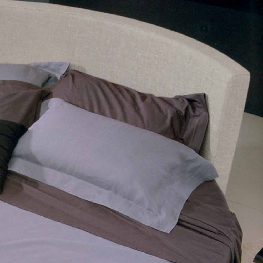 Rundes Doppelbett mit Stoffbezug und abgerundetem Kopfteil. Made in Italy.