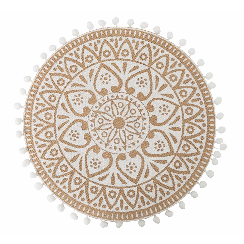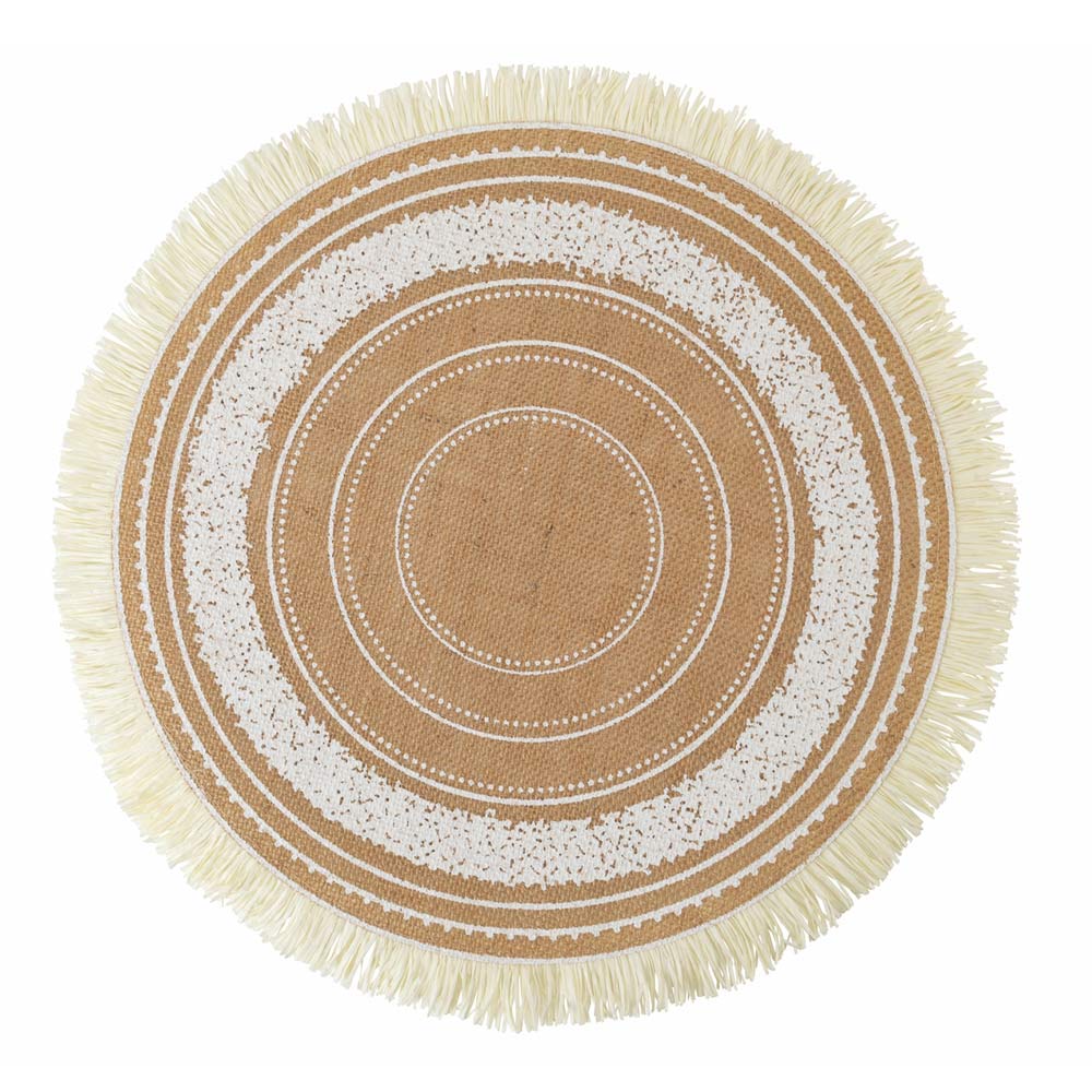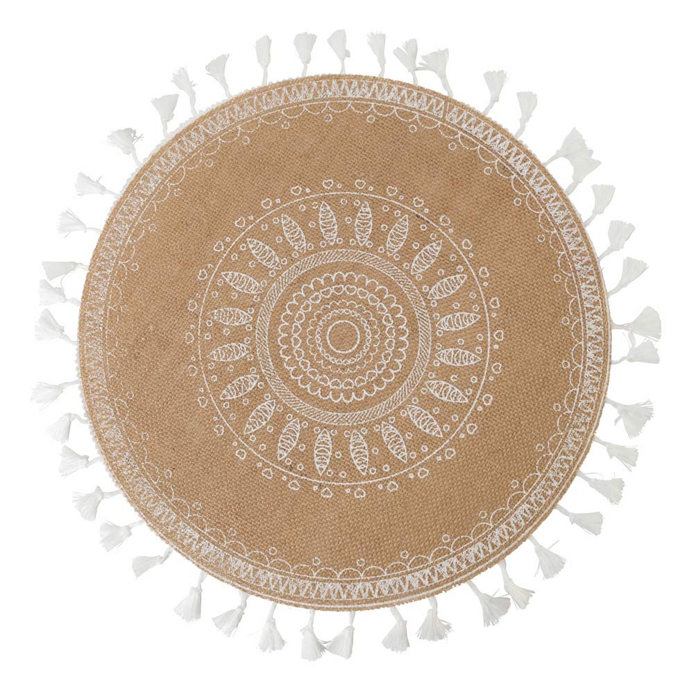 Rundes Jute-Tischset dekoriert in 3 weißen Sortimenten, 12-teilig.