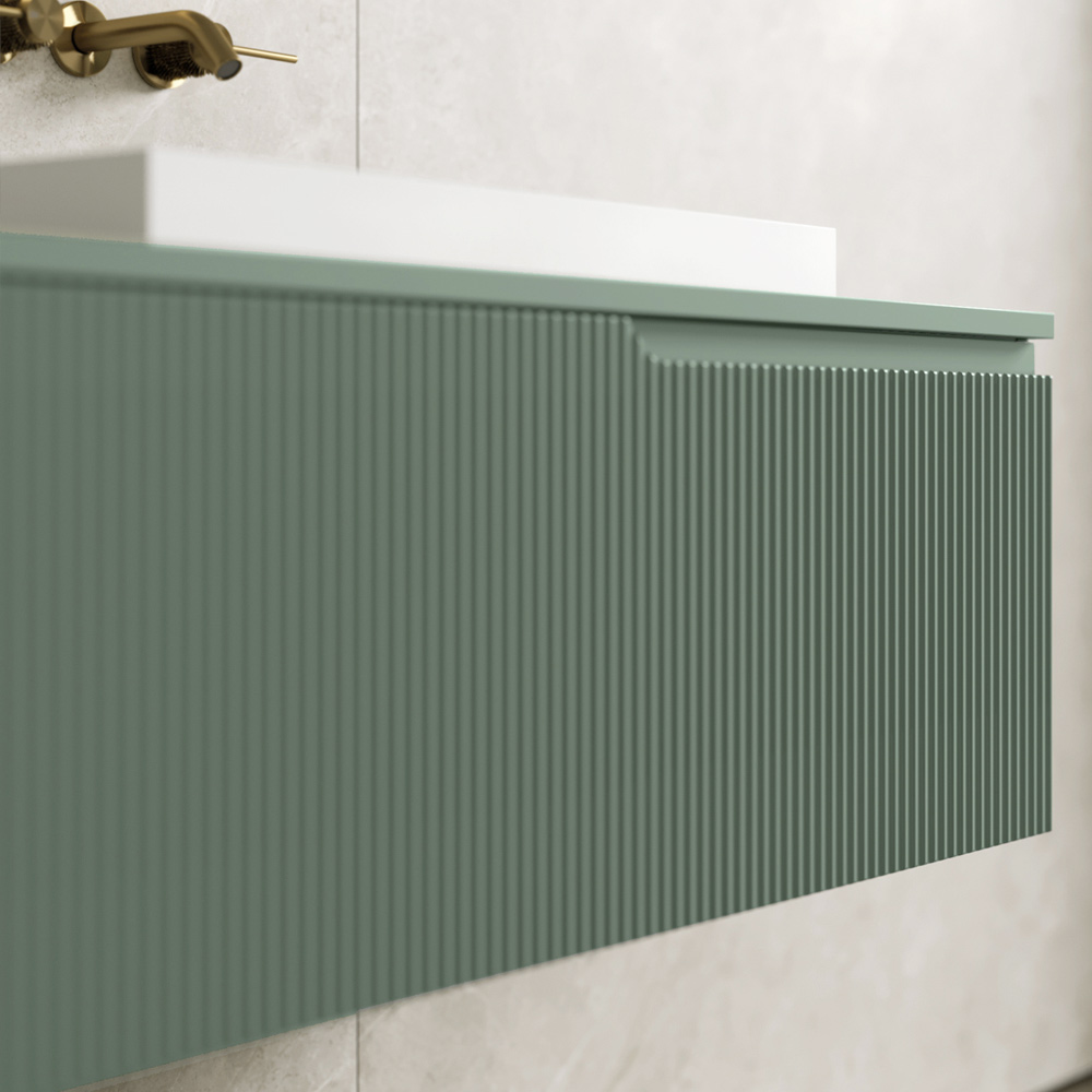 Badezimmerkomposition aus geripptem MDF in Salbeigrün. Made in Italy
