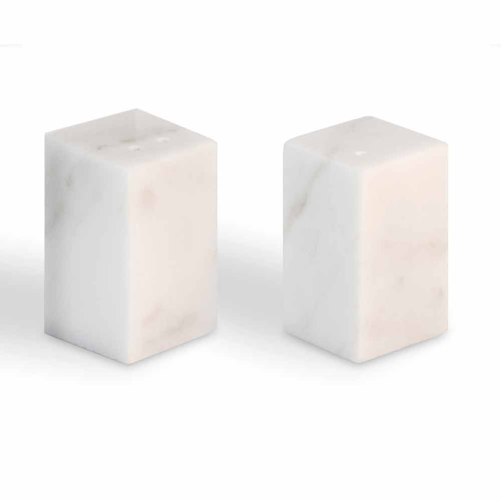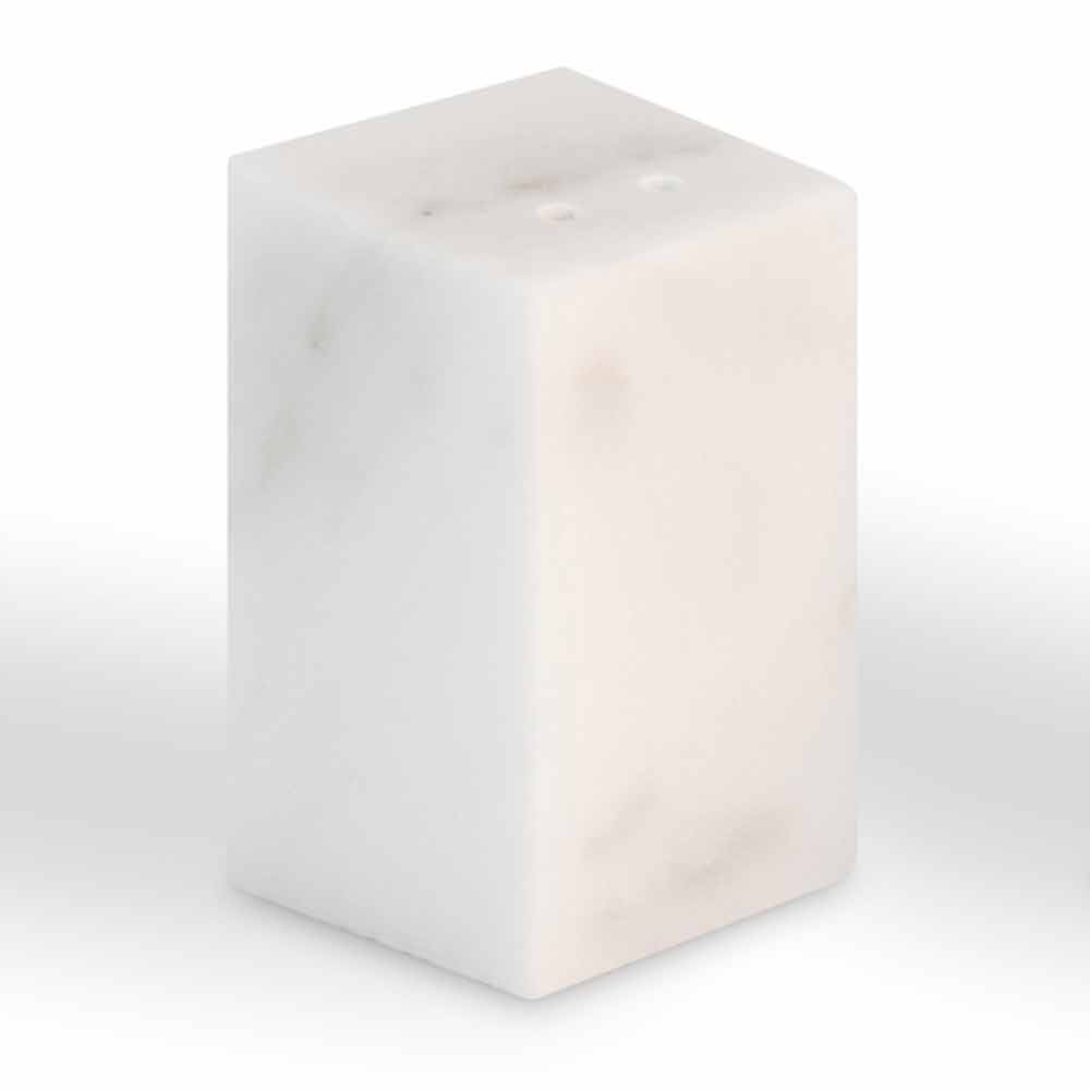 Küchenbehälter für Salz und Pfeffer zeichnen sich durch die Verwendung von weißem Carrara-Marmor aus und gelten als Einzelstücke, da sich jeder verwendete Marmorblock von den anderen für Adern und Schattierungen unterscheidet.