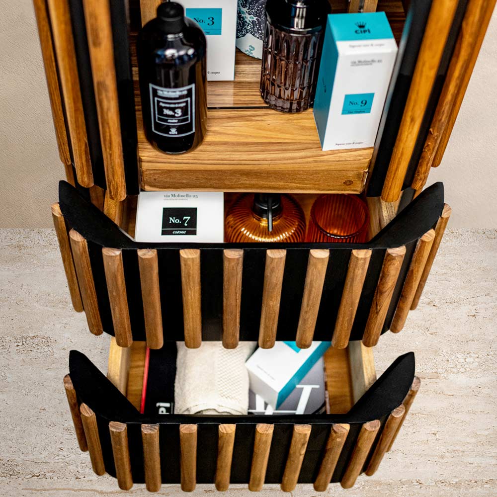 Säulen-Badezimmerschrank aus massivem Teakholz und Mahagoni – Plumeria