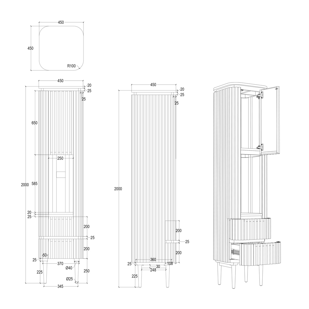 Dieser Säulen-Badezimmerschrank aus massivem Teakholz und Mahagoni ist mit seinen geschwungenen und glatten Formen ohne sichtbare Kanten oder Griffe ein Designjuwel. Die abgerundete Silhouette und der Verzicht auf überflüssige Details schaffen eine moderne und minimalistische Ästhetik, perfekt für eine moderne Badezimmerumgebung. Es bietet eine große, fast unsichtbare, langsam schließende Tür , die einen großzügigen Stauraum verbirgt, während der zentrale „offene“ Raum mit den beiden kostbaren Schubladen darunter verbunden ist. Die Verschmelzung von warmem Teakholz mit den satten Mahagoni-Tönen sorgt für einen natürlichen und edlen Touch .