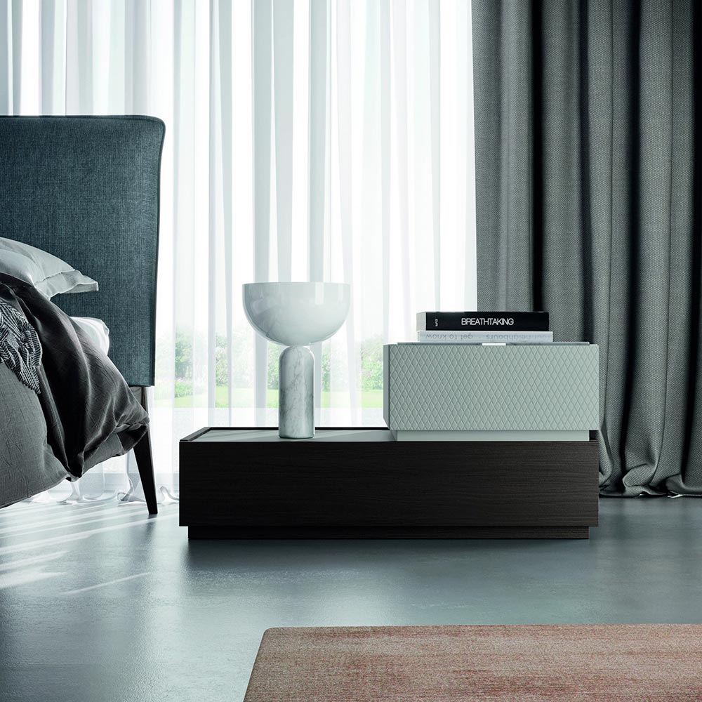 Es ist eine Einrichtungsidee, die auf der Grundlage handwerklicher Werte geschaffen wurde, um die für das Made in Italy typische Exzellenz und hohe Qualität zu erreichen, bei der innovative Ideen und Kultur zugunsten der Optimierung der Prozesse und der Liebe zum Detail miteinander verwoben werden. So entstehen funktionale und raffinierte Möbel für den Schlafbereich.