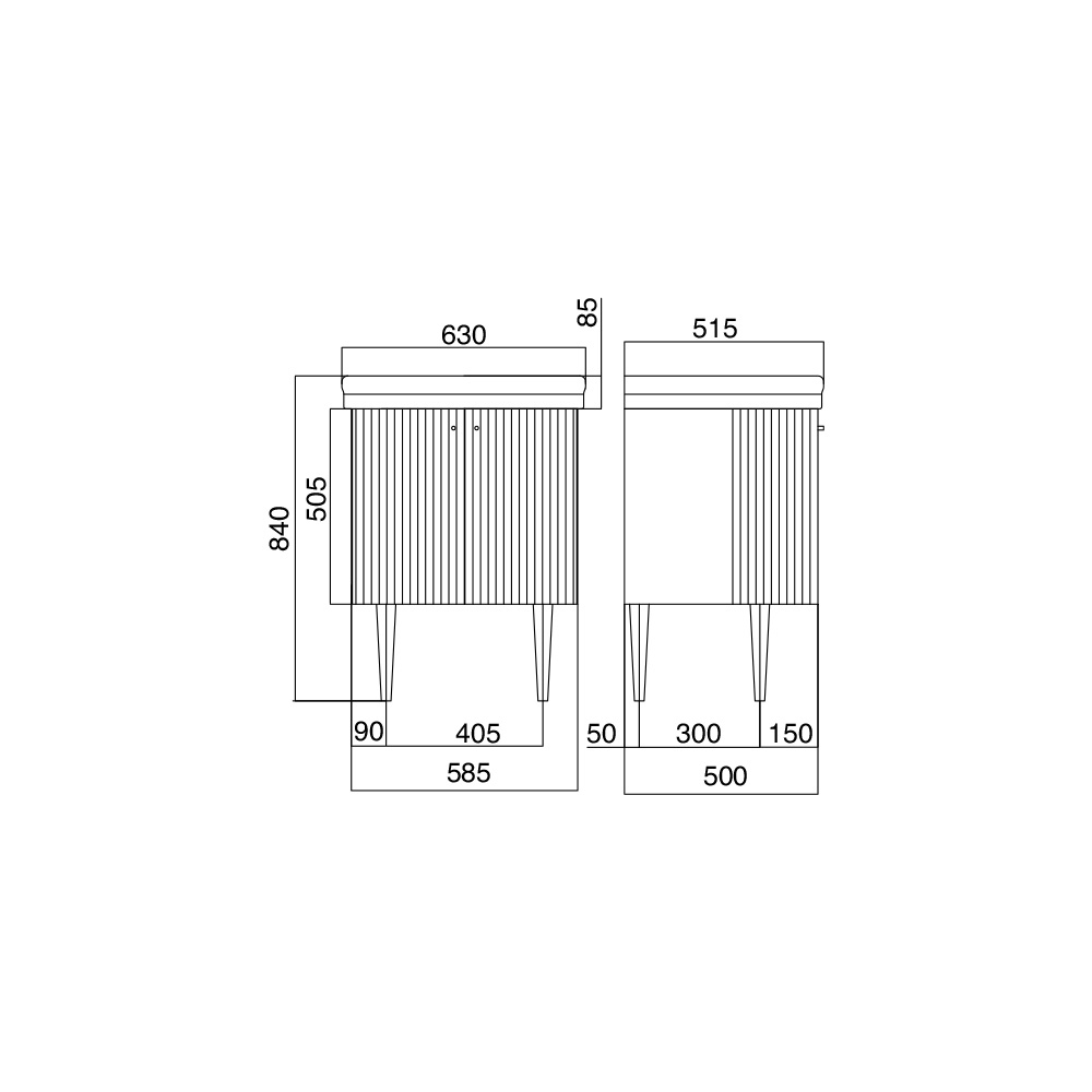 Abmessungen: Länge 63 cm x Höhe 84 cm x Tiefe 51,5 cm