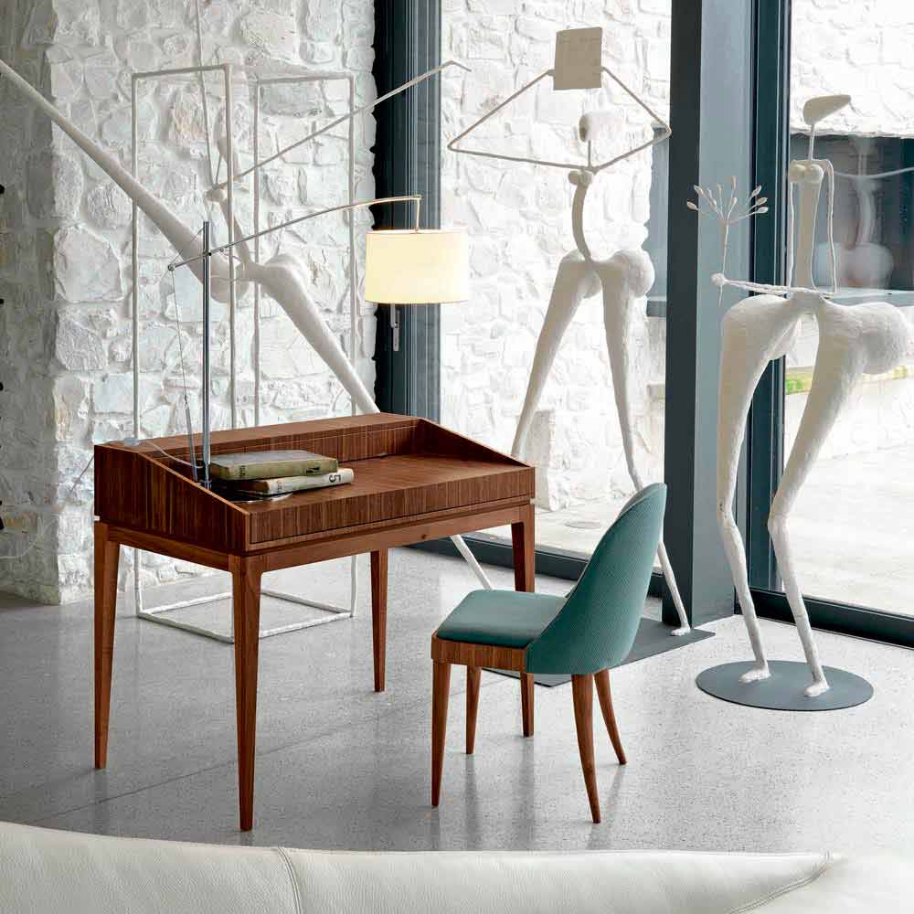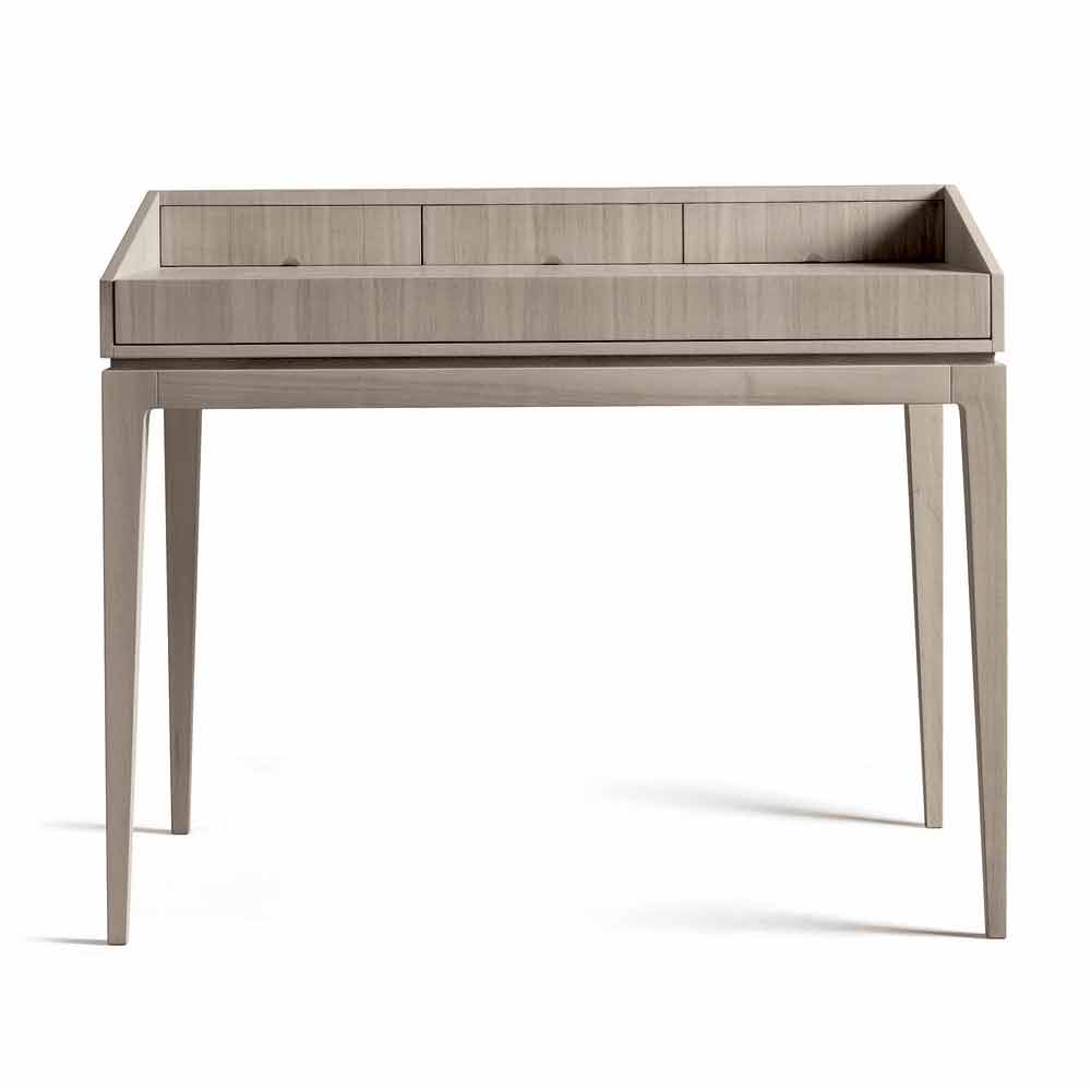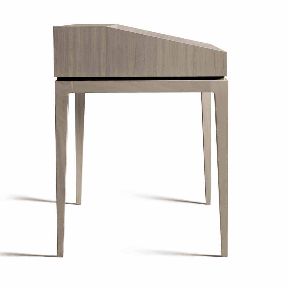 Eleganter Schreibtisch im Wesentlichen aus Naturnuss oder Naturnussbaum in Grautönen, der den stilistischen Ausdruck des Unternehmens und die Geschicklichkeit dieses Einrichtungs- und Designobjekts verbirgt.
