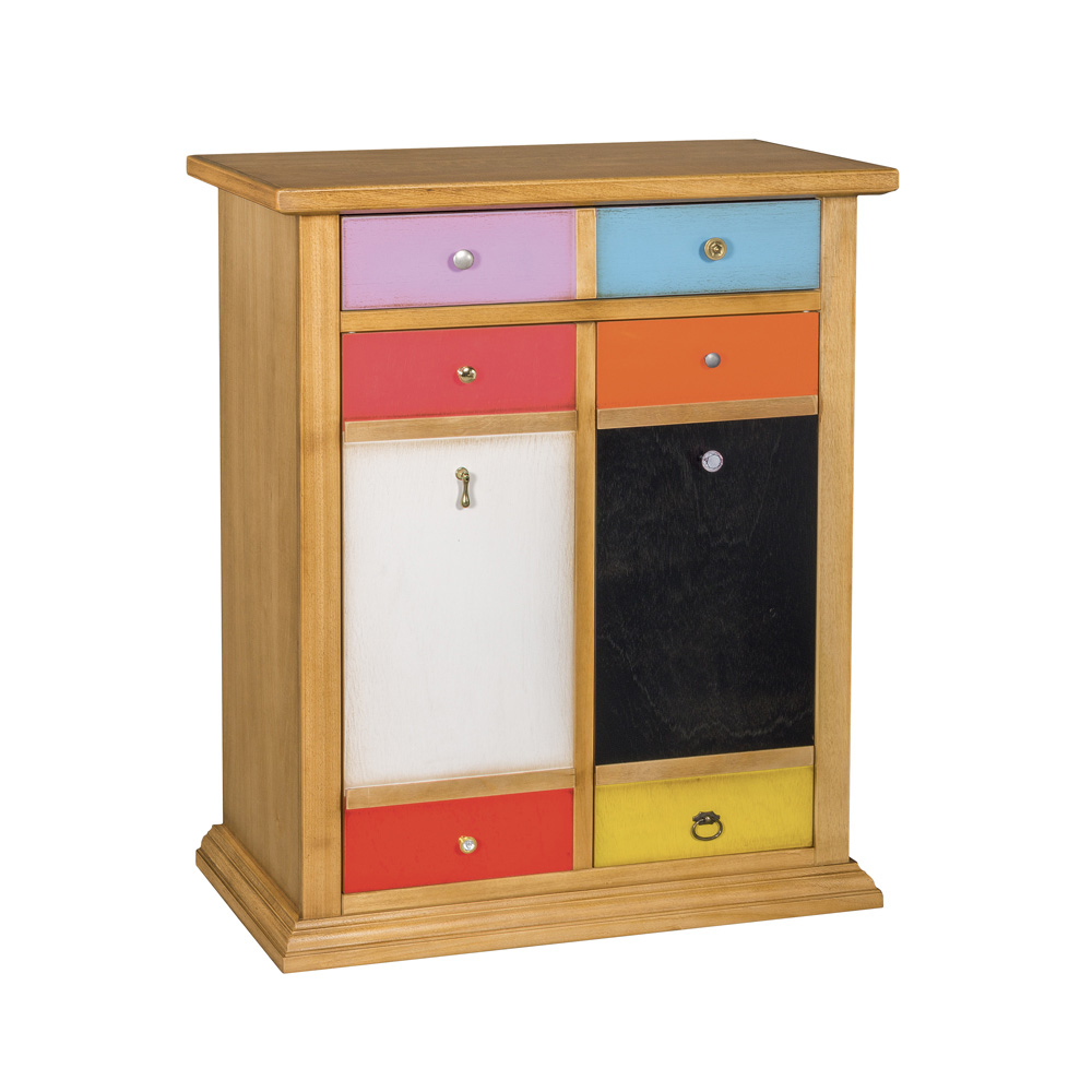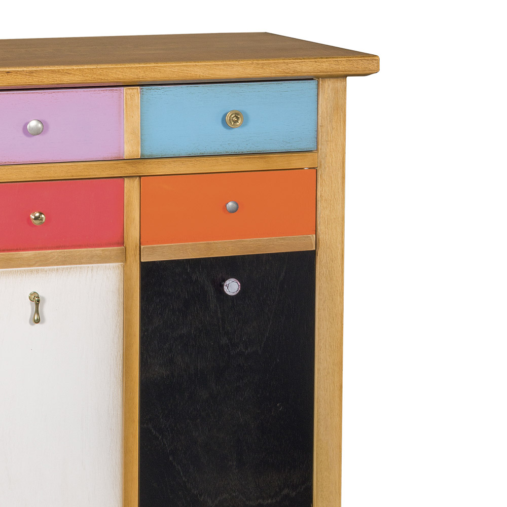 Made in Italy. Freude und Verspieltheit sind die Merkmale, die dieses Element mit kräftigen, leuchtenden Farben und den besonderen Formen der Griffe beschreiben. Eine originelle Neuinterpretation eines Möbelstücks mit großer