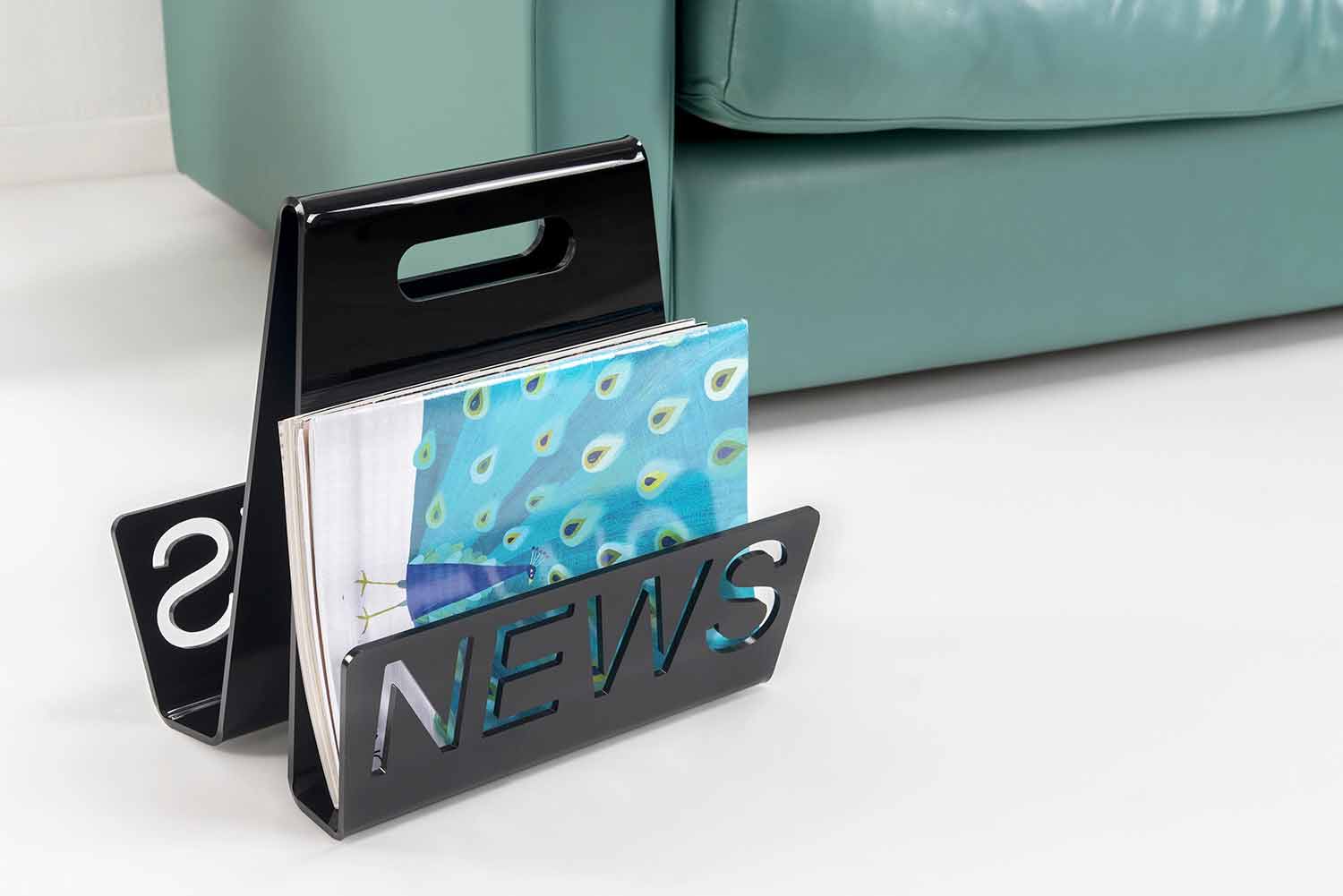 Zeitungsständer aus schwarzem oder transparentem Plexiglas in modernem Design, handgefertigt in Italien.