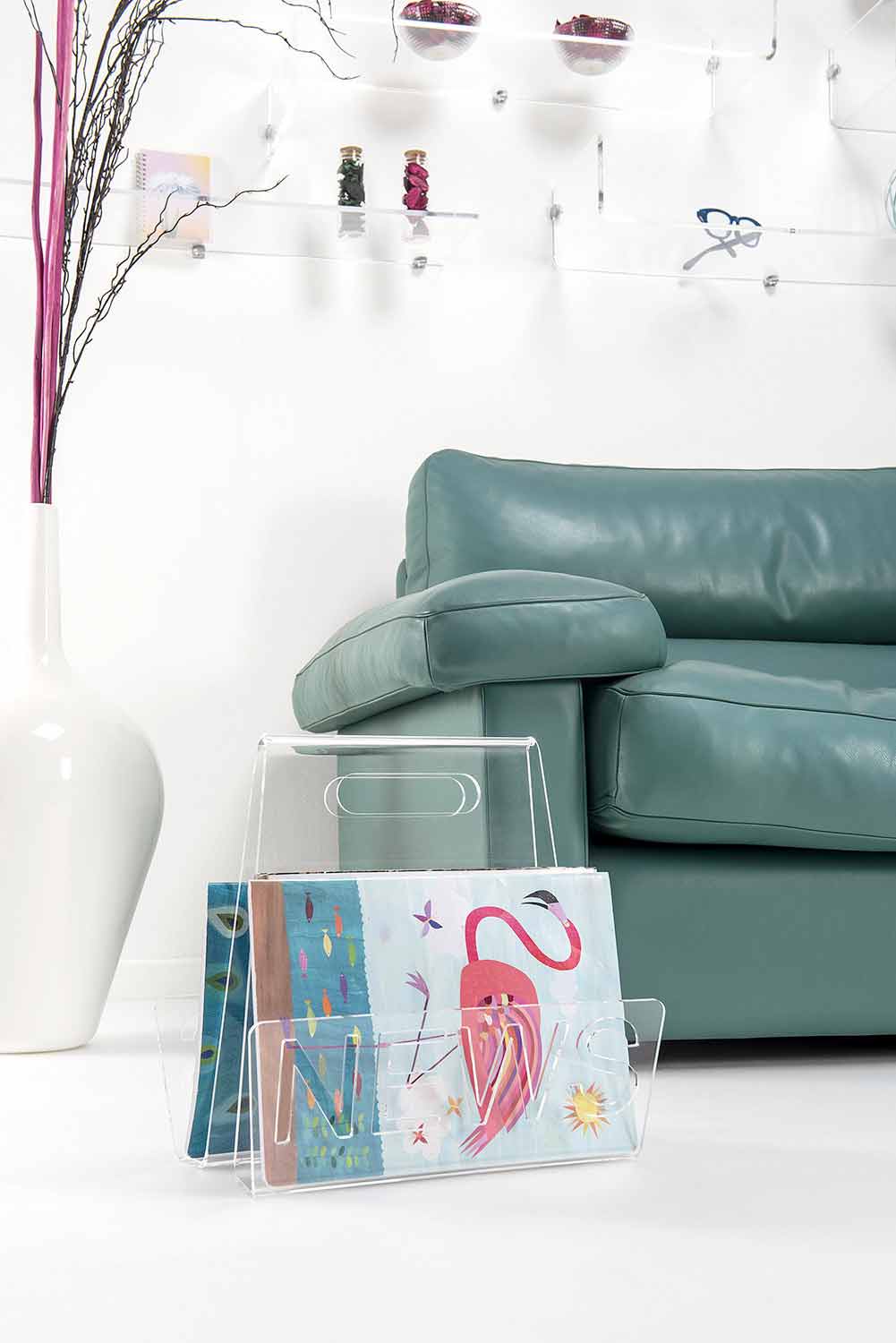 Anwendbarkeit von Plexiglas konzentriert . Dank der Erfahrung aus jahrelanger Tätigkeit verwandeln sich die Ideen kreativer italienischer Designer in Objekte, die bereit sind, jedem Ambiente eine Persönlichkeit zu verleihen: Möbel, Einrichtungsgegenstände, Wohnaccessoires und Beleuchtung, wesentliche Elemente der zeitgenössischen Wohnlandschaft.