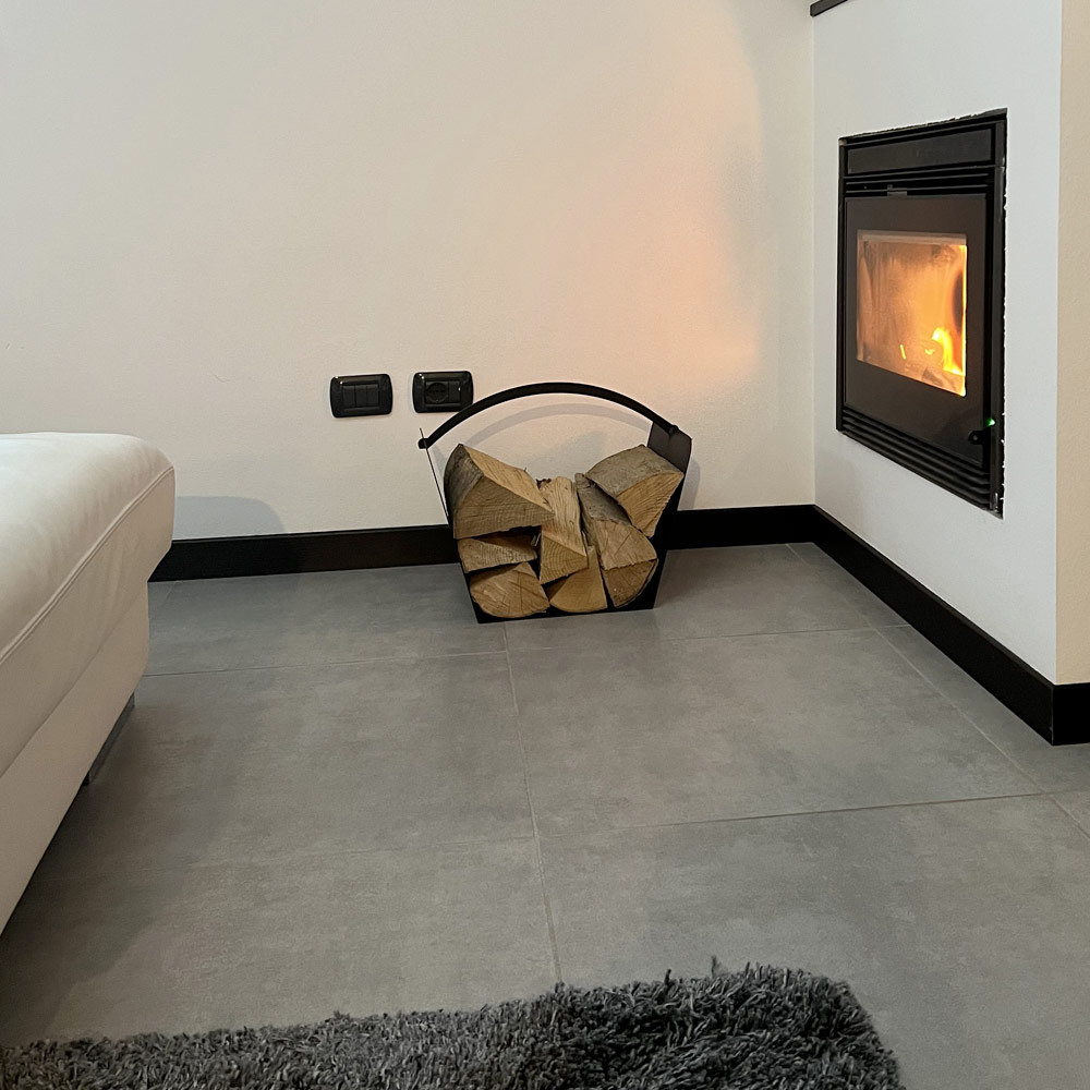 Portalegna für Design Kamin aus nicht-toxischen ality aus pulverbeschichtetem Stahlgüten. Entworfen, entworfen und handgefertigt in Italien, mit dem Ziel, nicht nur die Nützlichkeit des Holzhalters selbst hervorzuheben, sondern auch seinen ästhetischen Wert mit seinem minimalen Design in Form eines stilisierten Korbs.