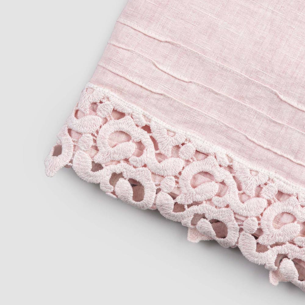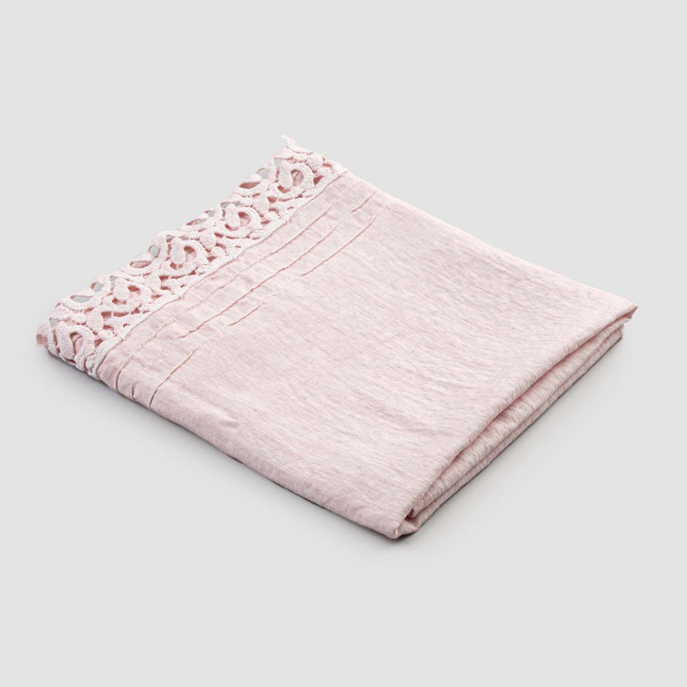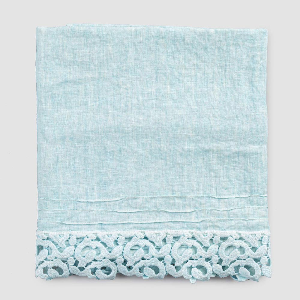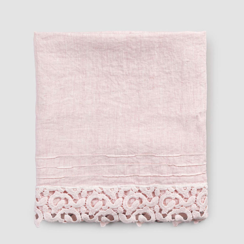 Badetuch aus schwerem Leinen mit Poema-Spitze auf einer der beiden kurzen Seiten.
