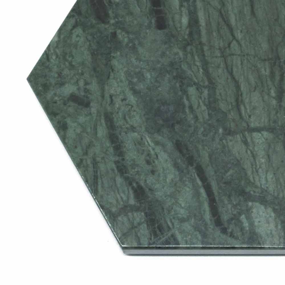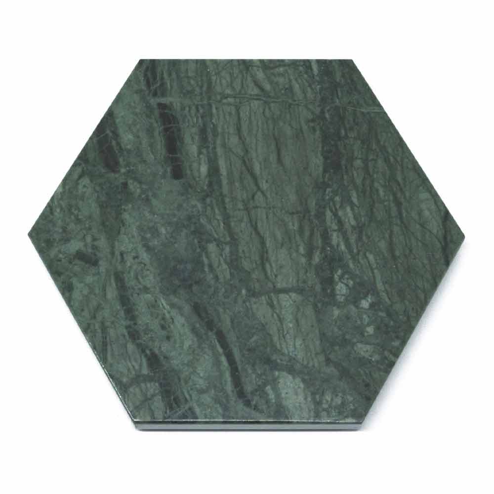 Servierplatte im sechseckigen Design aus schwarzem Marquinia- oder grünem Guatemala-Marmor mit Kork, 2 Stück made in Italy.