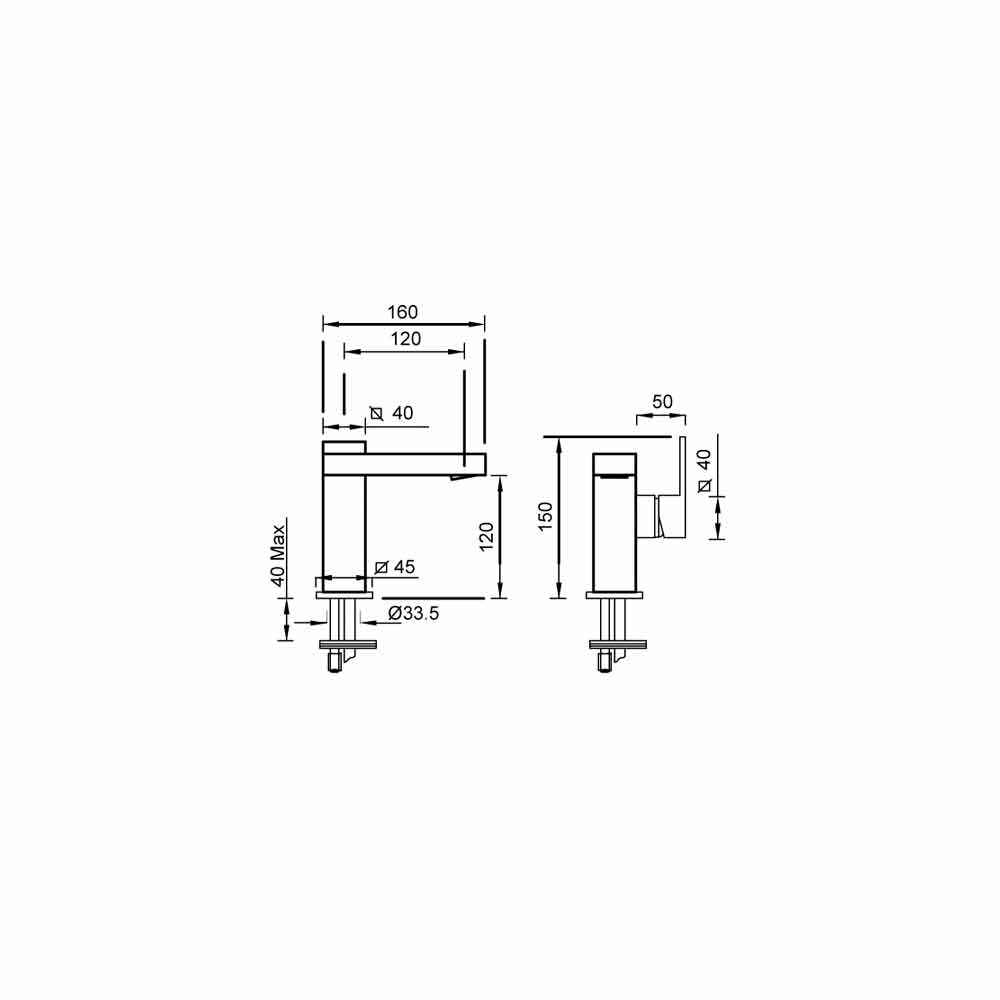 Waschtischmischer mit seitlichem Hebel ohne Ablaufgarnitur aus Messing. Made in Italy.