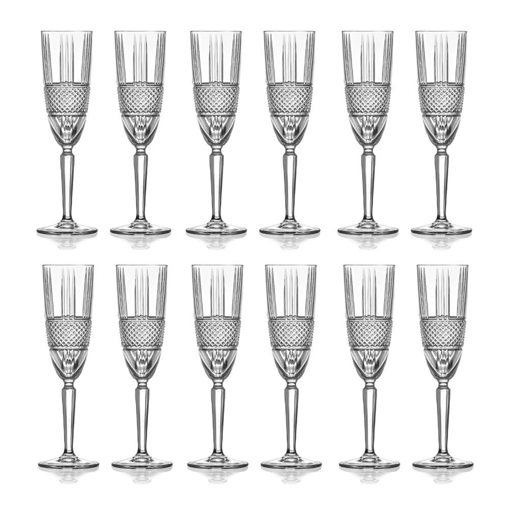 Set Flötenkelche aus Öko-Kristall mit Diamantschliff, 12-teilig made in Italy.