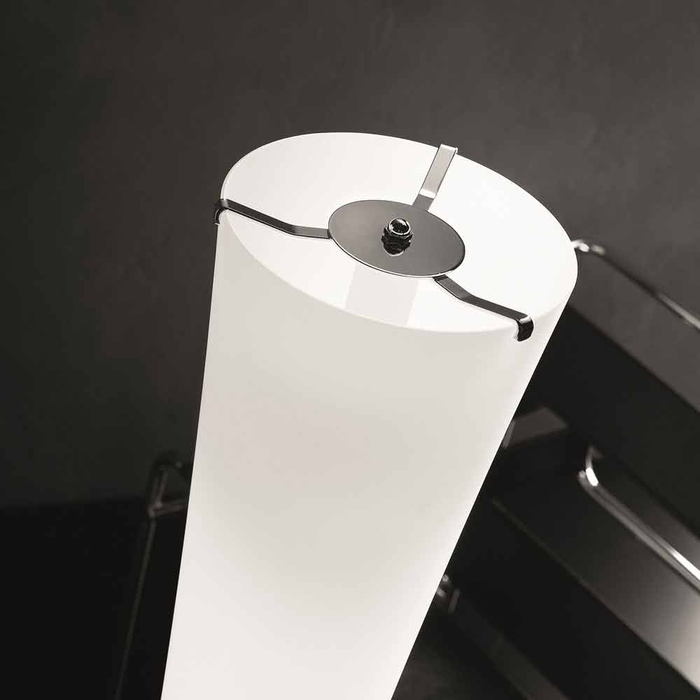 Clessidra ist eine Stehleuchte von großer leuchtender und szenografischer Wirkung, die auch die bemerkenswerte Dimension des geblasenen Glases berücksichtigt. Erhältlich in verschiedenen Farben wie Bernstein-Schwarz, Bronze-Dekor, Multicolor mit Murrine, sowie Weiß, ist es immer dimmbar und beleuchtet von zwei T5 oder LED-Streifen.