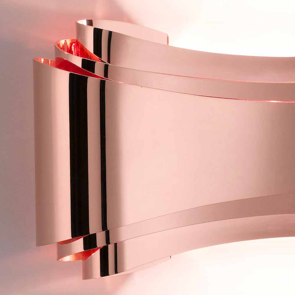 Ionica ist eine Lampe aus Stahlbändern, die geschickt von Hand gebogen wird, um eine flüssige und zusammengesetzte Form zu schaffen.