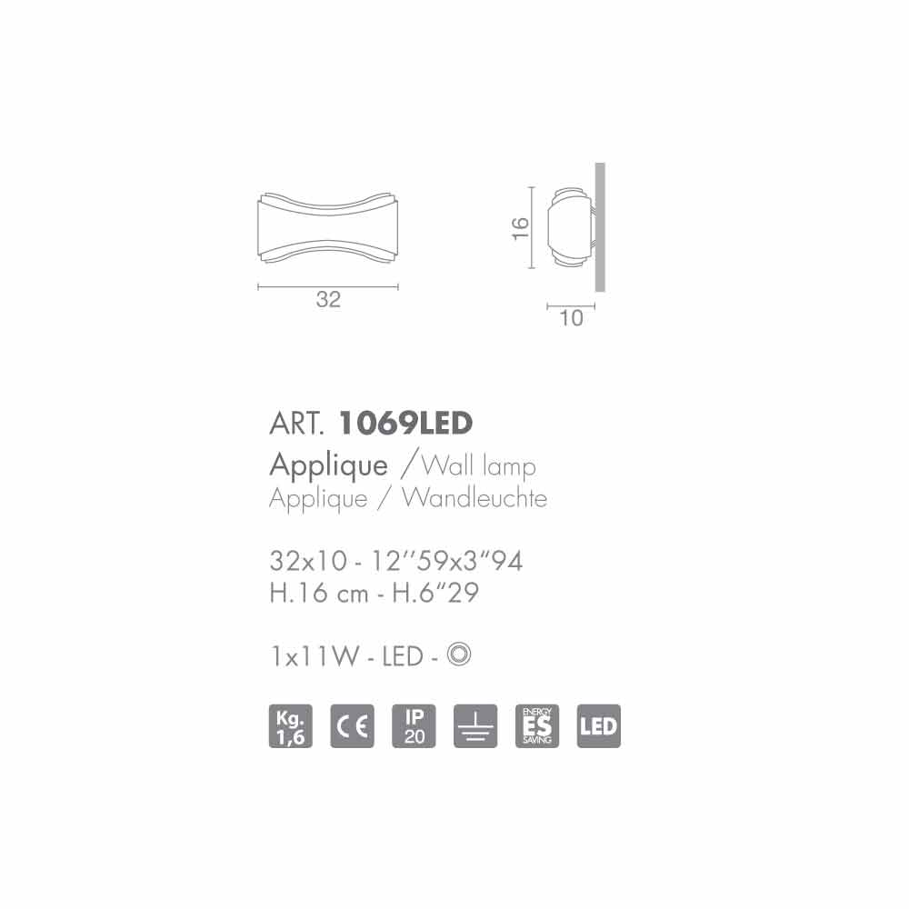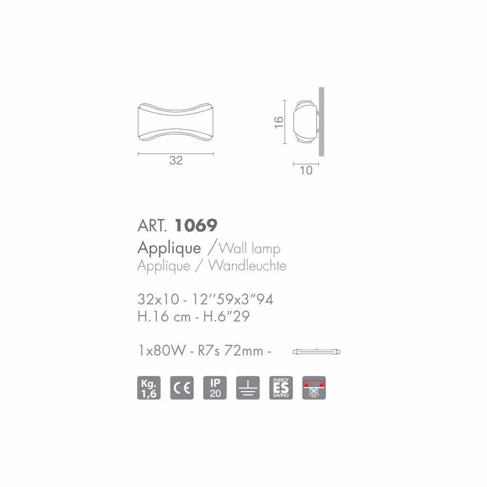 Selene Ionica Applikation 32x10 H16cm in Stahl und Glas made in Italy