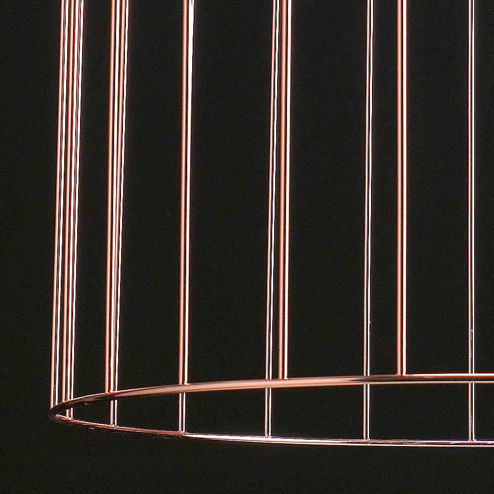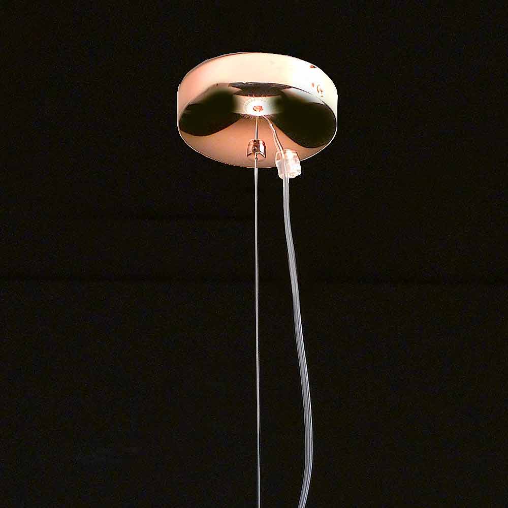 Kluvì ist eine Sammlung von drei Aufhängungen und Lampen, die eine beträchtliche Größe erreichen können, bestehend aus einem Metallkäfig und einer milchig-weißen mundgeblasenen Glaskugel. Verarbeitung: poliertes Kupfer; vorbereitet für die Verwendung von 1 Glühbirne 70W - E14.