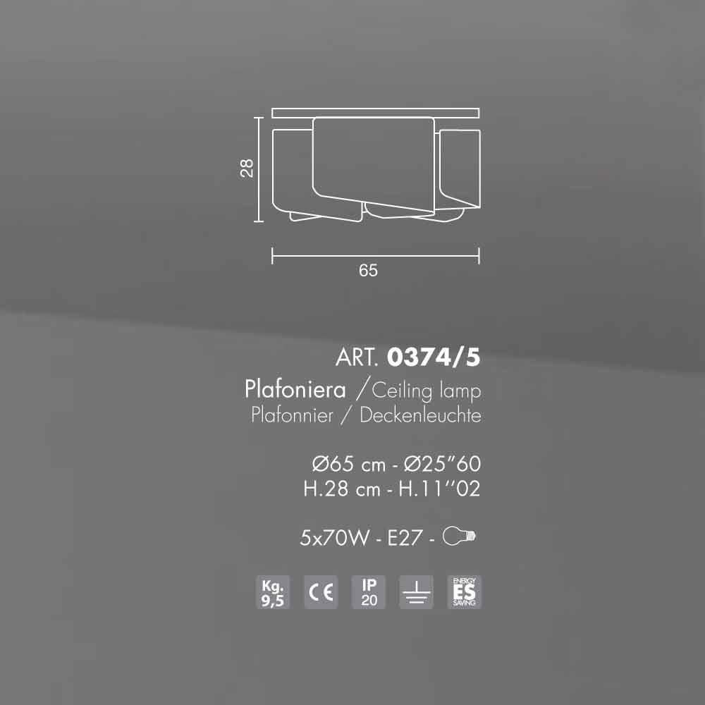 Papiro ist eine unglaublich reiche und vielseitige Kollektion, die alle Arten von Lampen sammelt, die in verschiedenen Variationen von Form, Größe und Anzahl der Lichtquellen artikuliert sind. Der Diffusor mit seiner besonderen Form ist aus extraklarem Glas und in verschiedenen Ausführungen erhältlich. Vorbereitet für die Verwendung von 5 E 27 70W Glühbirnen (nicht inbegriffen).