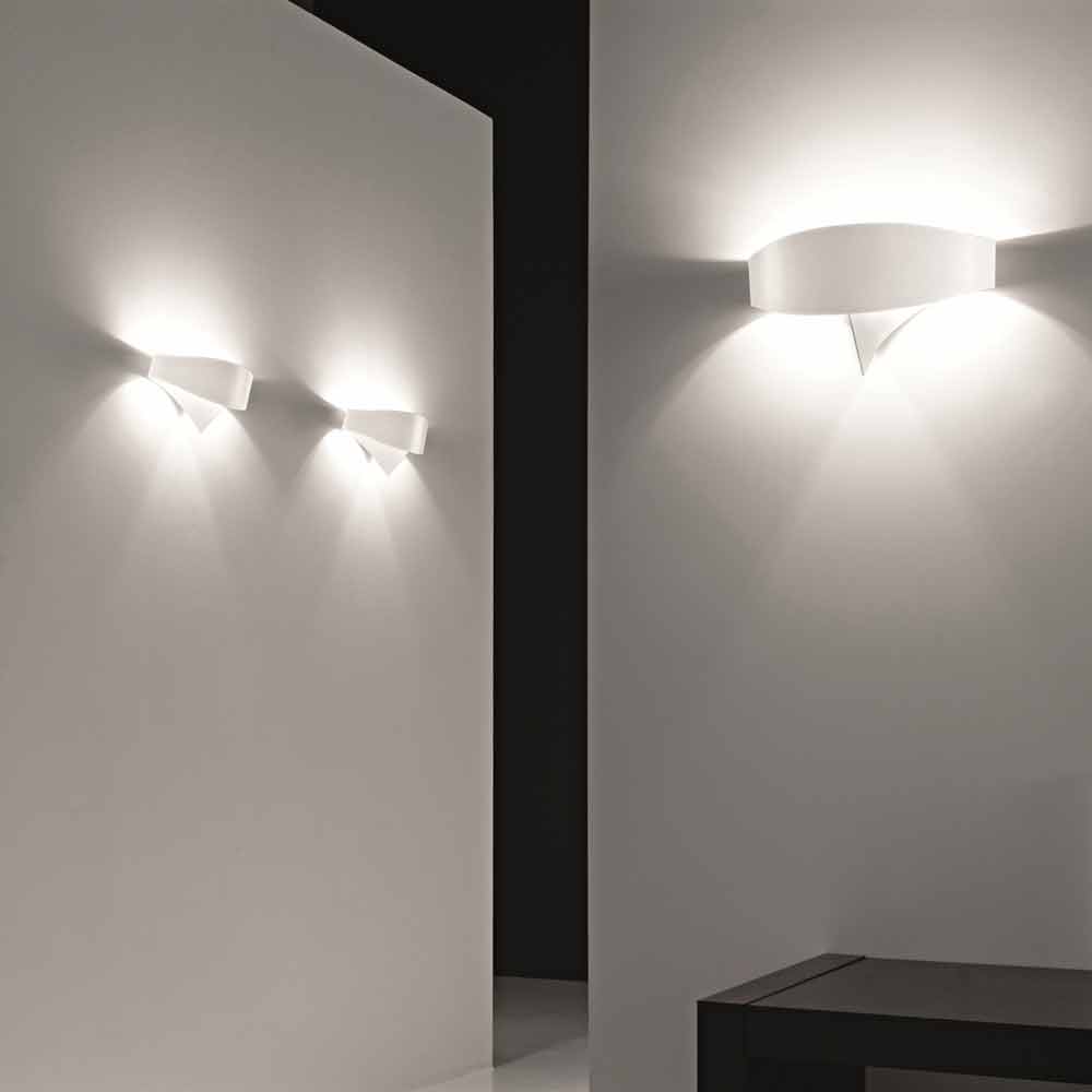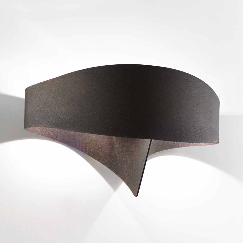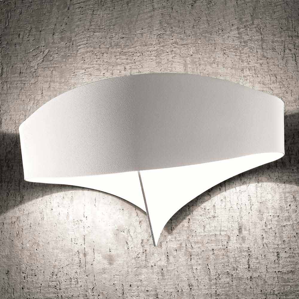 Scudo ist eine Wandleuchte, die aus einem laserförmigen Stahlband entsteht, das von Hand zu einem ungeteilten und umhüllenden Element gefaltet wird. Erhältlich in verschiedenen Ausführungen und vorbereitet für den Einsatz mit 2 Glühbirnen G9 42 W oder 1x11W LED.