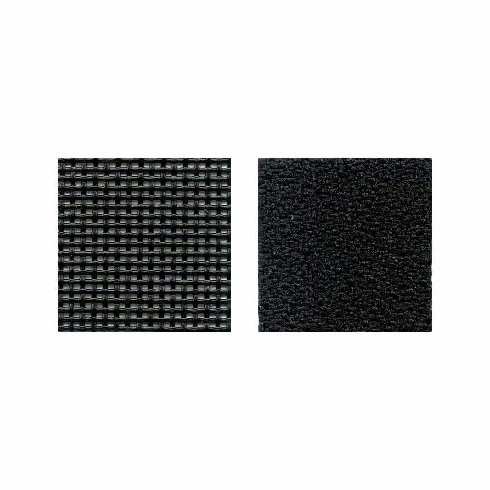 gepolsterter Sitz aus schwarzem Stoff und Rücken aus schwarzem mikroperforiertem Technorete.