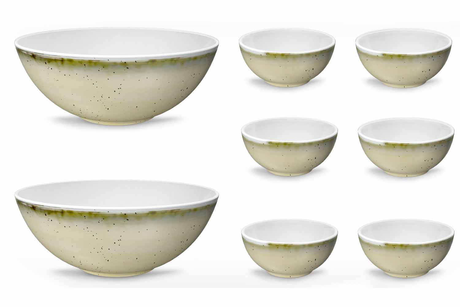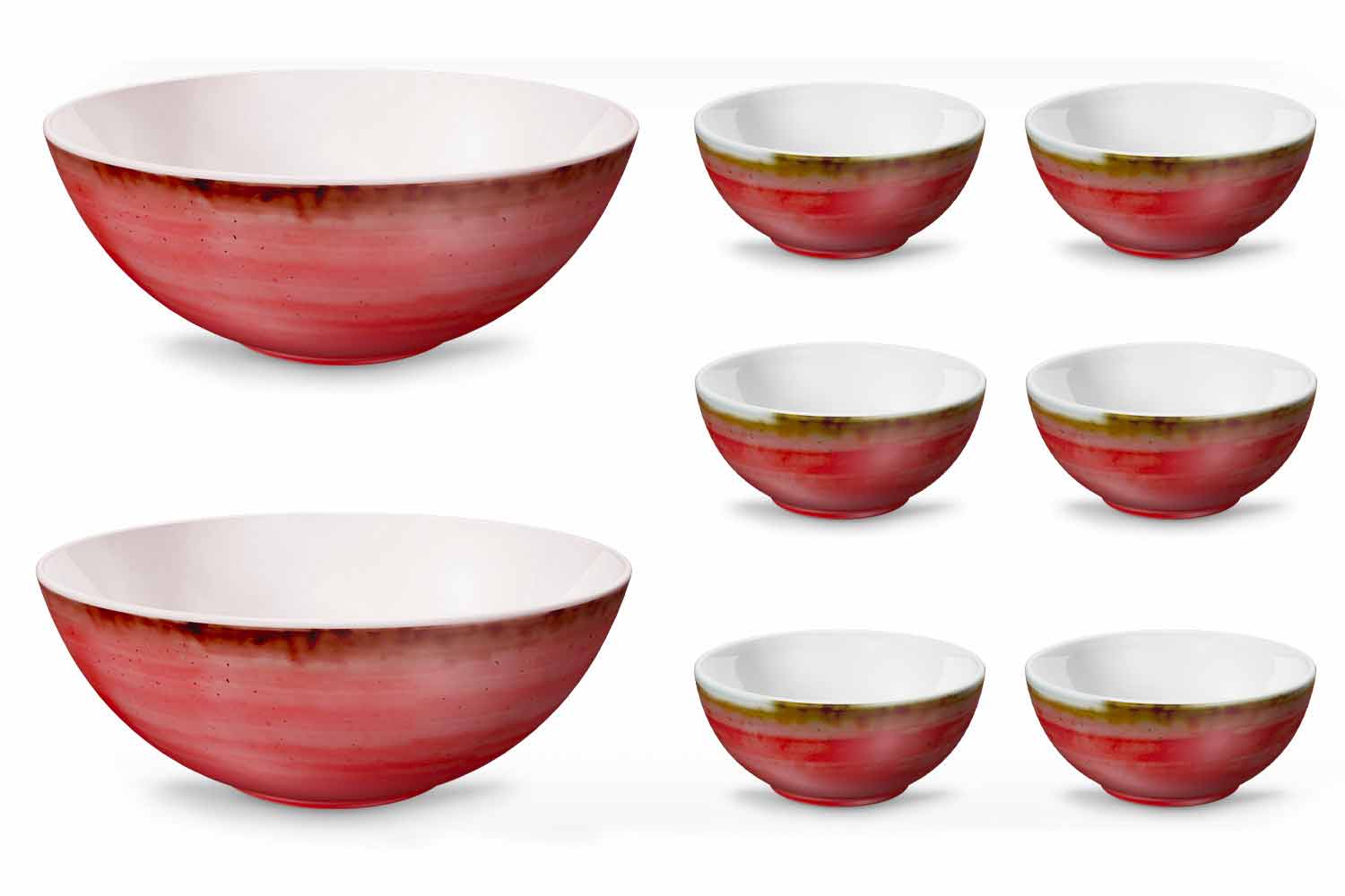 Rustikales Eis oder Obstsalatschale in modernem Design aus farbigem Porzellan, 8 Stück.