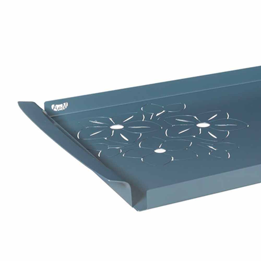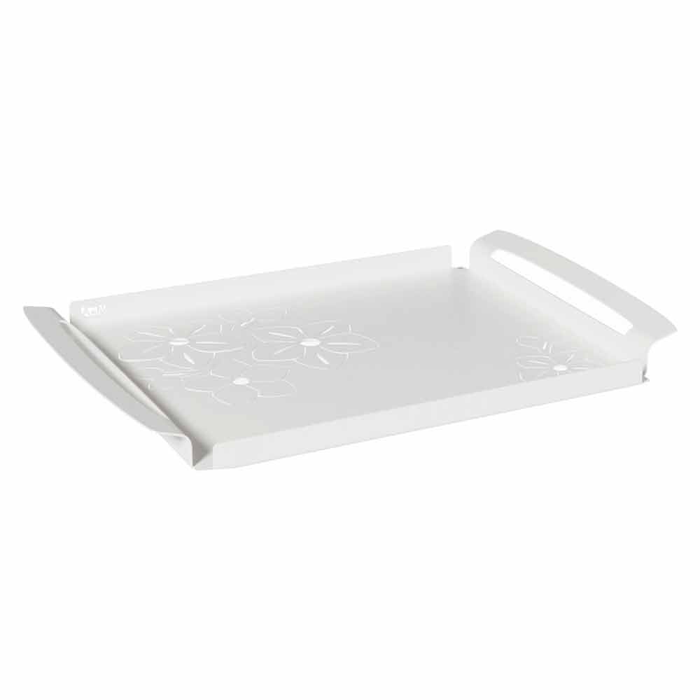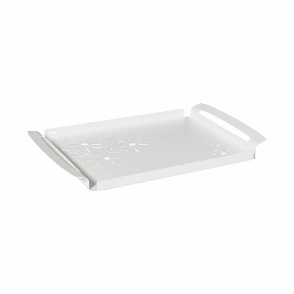Modernes rechteckiges Serviertablett mit Blumen aus weißem, schlammigem oder blauem Eisen; handgefertigt in Italien.