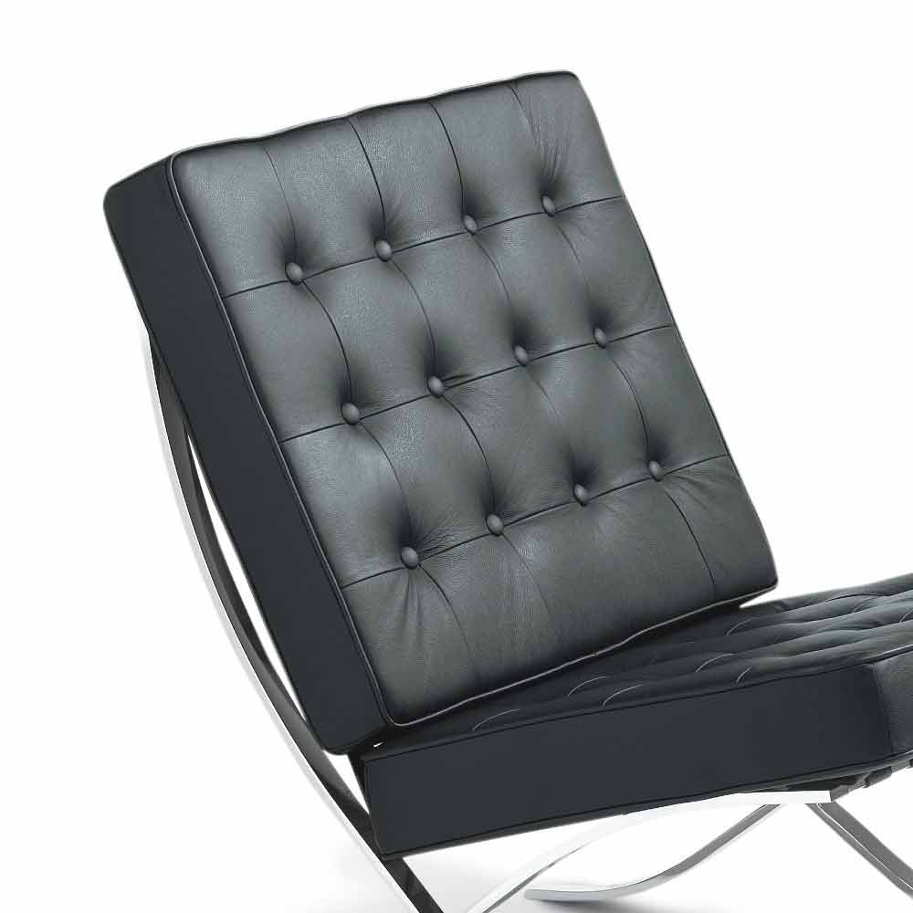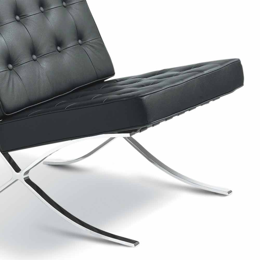 Der Sessel hat ein Gestell aus verchromtem Metall und ist mit Kunstleder bezogen.