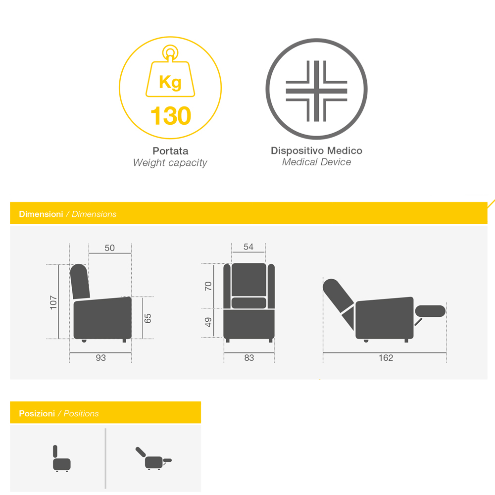 Sessel mit Bewegung, die die entspannte Position der Rückenlehne und des Fußteils erreicht.