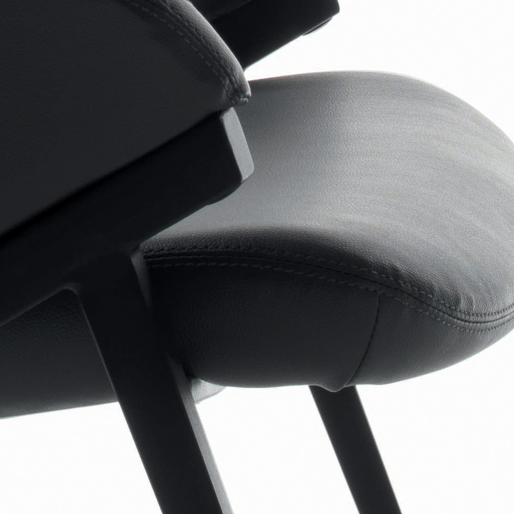 Bezug aus graphitfarbenem Öko-Leder. Dieser zu
