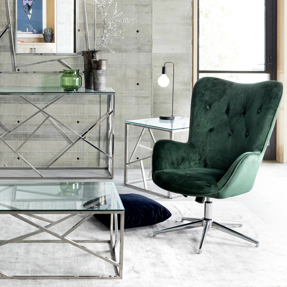 Sessel mit verstellbarer Struktur aus verchromtem Stahl und Samt - Giulia