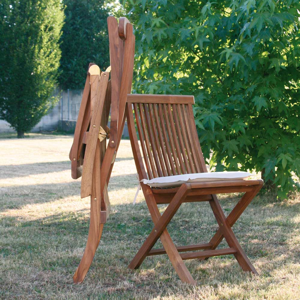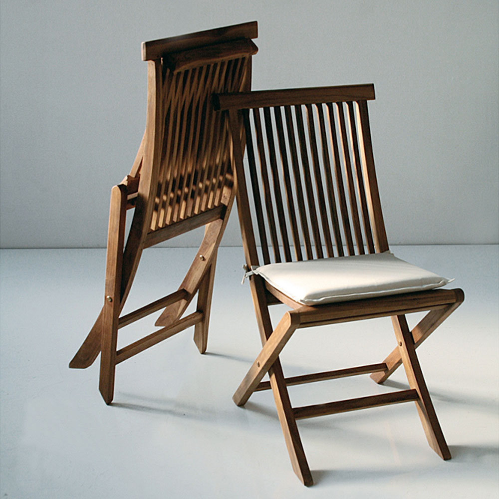 . Klappstühle für den Außenbereich, mit wasserabweisendem Cremekissen.