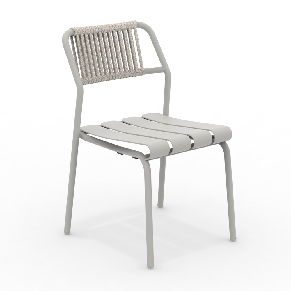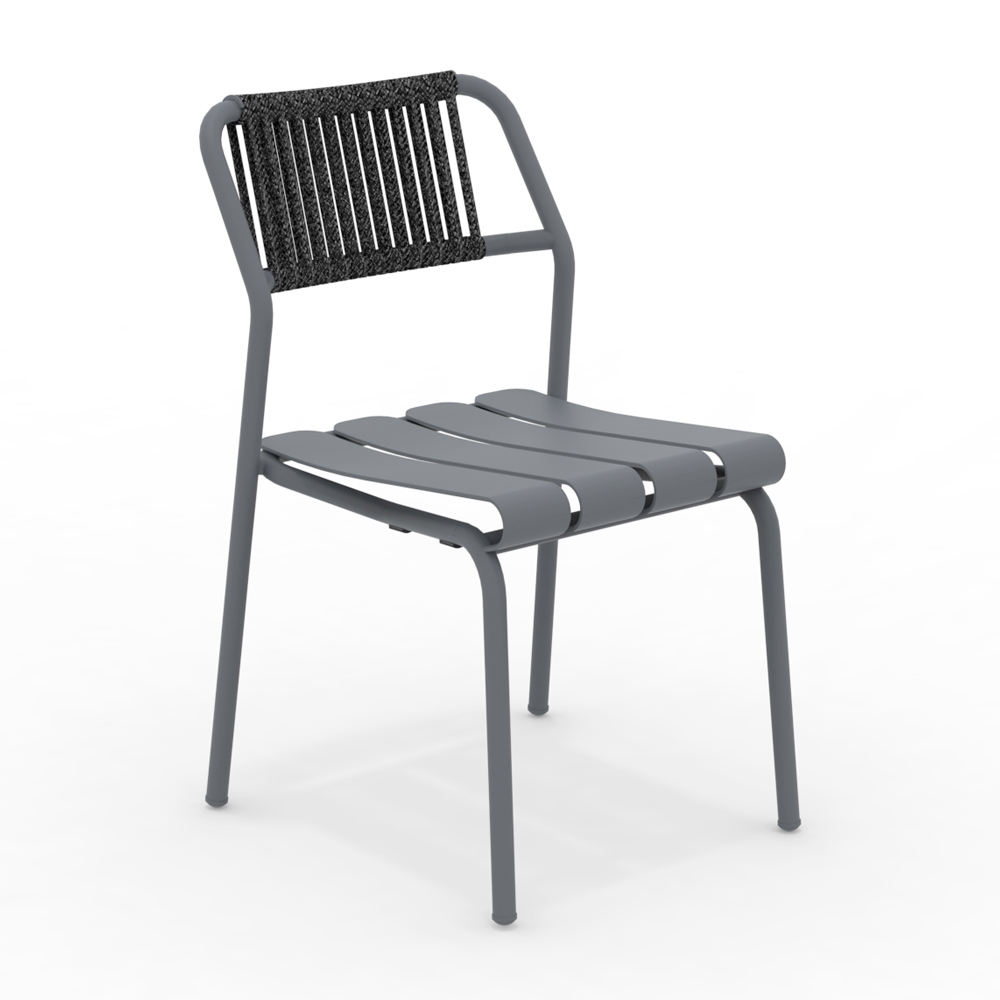 Die leichte, aber robuste Struktur bietet höchsten Komfort. Der ergonomische Sitz und die geformte Rückenlehne aus Seil sorgen für bequemen und entspannenden Halt. Die Aluminiumlamellen verleihen einen dynamischen und modernen Look, während das Finish einen Hauch von Eleganz und Raffinesse verleiht.