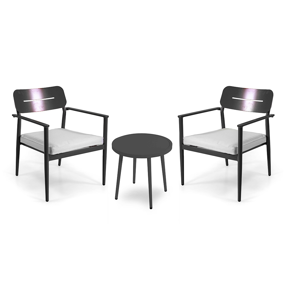 Außerdem passen der minimalistische Look und die klaren Linien dieses Sets besonders gut in moderne Kontexte und integrieren sich perfekt in Gärten, Terrassen oder Balkone, wo Platz kostbar ist, man aber nicht auf Stil und Komfort verzichten möchte.