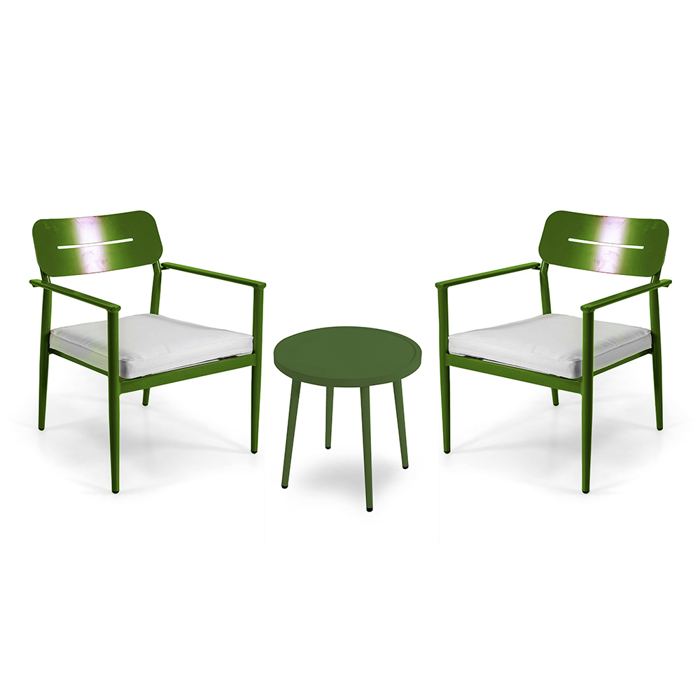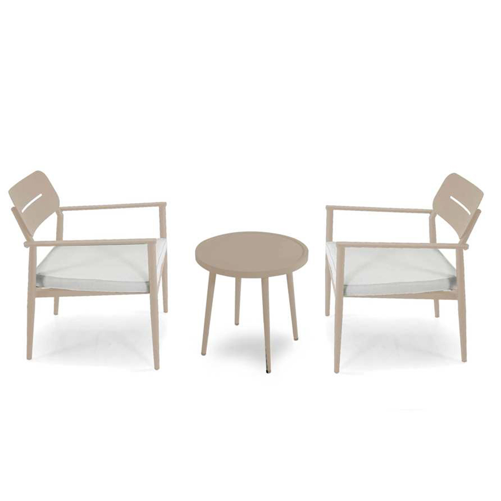 Diese Outdoor-Lounge kombiniert Funktionalität und modernen Stil, perfekt für alle, die ihren Außenbereich mit Geschmack einrichten möchten. Die Aluminiumstruktur ist sowohl elegant als auch robust und garantiert eine lange Lebensdauer und einfache Wartung. Jedes Element des Sets ist so konzipiert, dass es maximalen Komfort bietet: der Sessel mit seiner ergonomischen Rückenlehne und den weichen und einladenden Kissen.