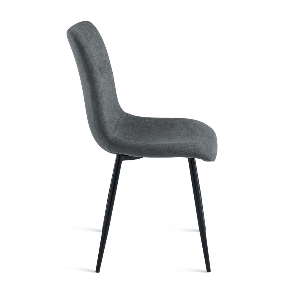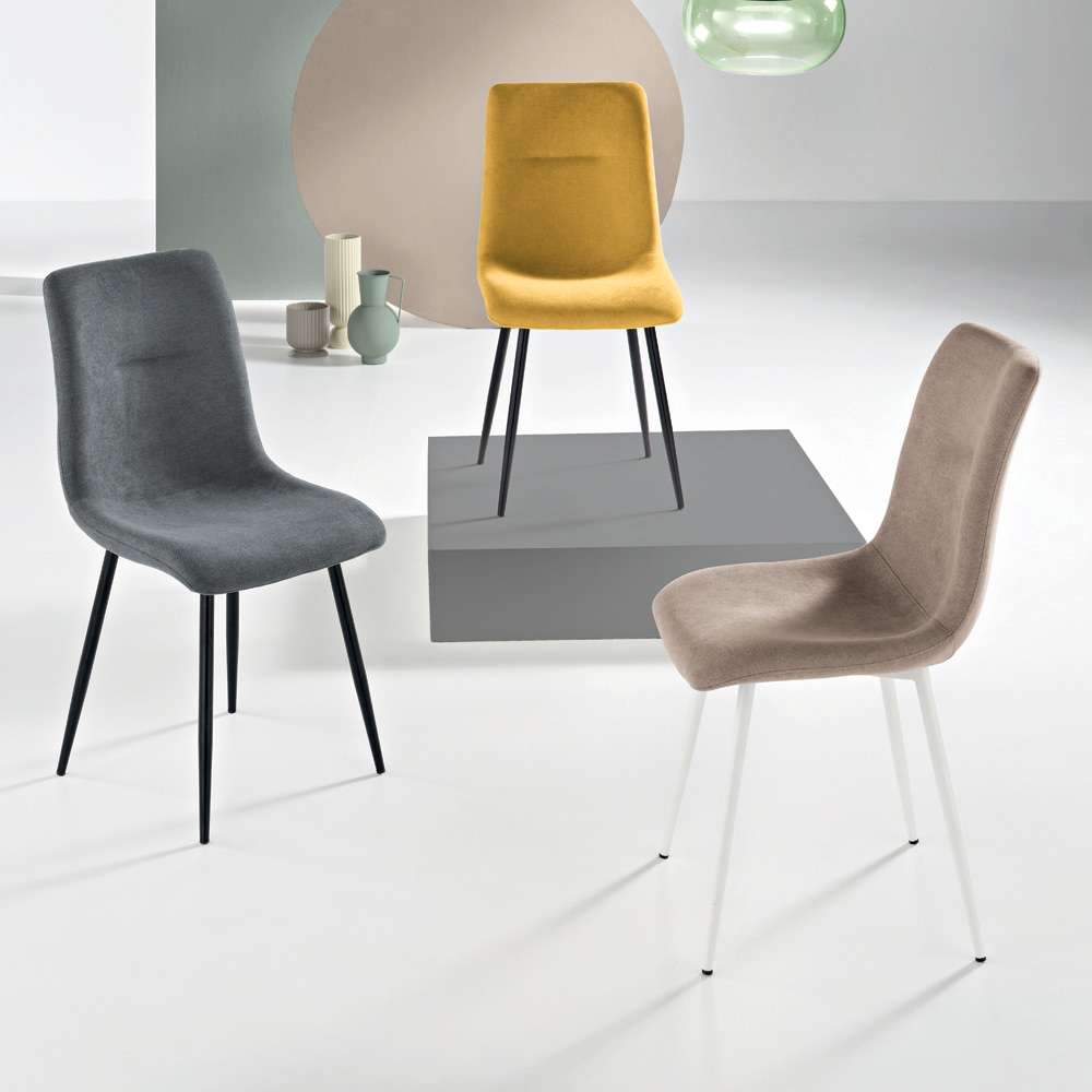 Elegantes 4er-Set moderner Stühle, die Ihr Esszimmer , Ihre Küche oder Ihr Wohnzimmer stilvoll einrichten. Die mit Stoff bezogene Sitzfläche mit weicher Polsterung sorgt für Komfort und ein einladendes Ambiente, während das lackierte Metallgestell Stabilität und Langlebigkeit gewährleistet.